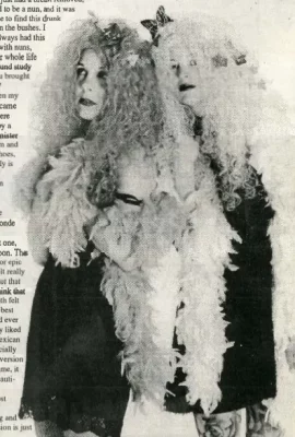 The reason I quote this song, besides its deep meaning to the rest of the lyrics, is that Johnette Napolitano has tied two ends of time rather nicely, and is stringing up for more. As the ex singer/bassist/songwriter for Concrete Blonde, she captured the hearts and minds of many free thinking people, who were moved in some way by the band, the lyrics, the exquisite playing of Jim Mankey (Concrete Blonde guitarist) or some small thing that stuck in their heads. For me, it was all of the above and much more. That is why I smoked 17 cigarettes waiting for her to call, after drinking lattes all morning, trying to think of good questions to ask. I must first apologize for not letting a chance to talk to Holly Beth Vincent, her partner in crime in their new band Vowel Movement. That would have been too much for me in one day though. Holly is equally as important an influence as Johnette. They are two of the women who most likely gave the spunk, drive and passion to the likes of Liz Phair, 7 Year Bitch, L7 and that Courtney girl. Holly and Johnette helped write the book that these groups are only now reading. That said, and with all of my star struck babbling taken out, Here’s Johnette!