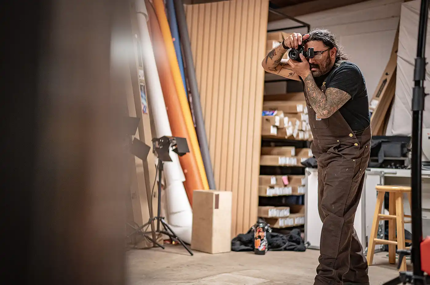 Guzman’s oft utilized black-and-white presentation of his work creates intensity. His use of high contrast combined with striking angles and composition produces an element of mystery, prompting viewers to dig deeper into the process behind the photos. “When I shoot black-and-white, I want that photo to be a little more dramatic,” Guzman says. “It feels like it has a little more story behind it.”