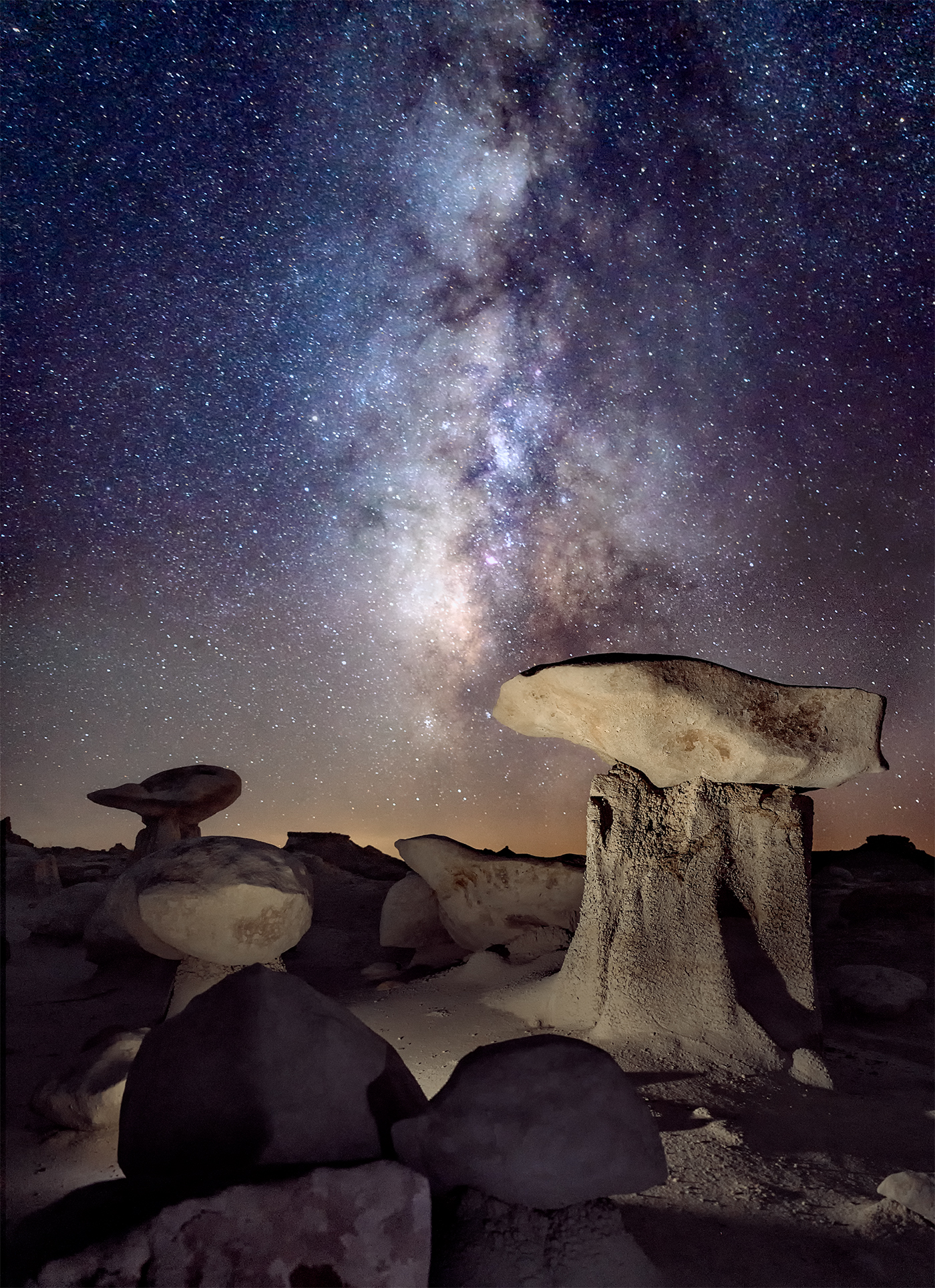 In a Toyota 4Runner crammed with camera gear and multiple dogs, Kenyon seeks her next photograph with a mixture of spontaneity and meticulous planning. “My personality is: ‘Let’s just hit the road!’” she says, “but also, I have a destination in mind.” One example of Kenyon’s intensive preparation features her dog Tuffy sitting below Metate Arch in Grand Staircase–Escalante National Monument as the Milky Way looms above. “It’s a blend, meaning several photos were taken at separate times, forming a single composition.” Kenyon used an app called PhotoPills to determine the perfect moment of alignment between the arch and the Milky Way. Then she spent several months editing the shot to achieve a precise final result.