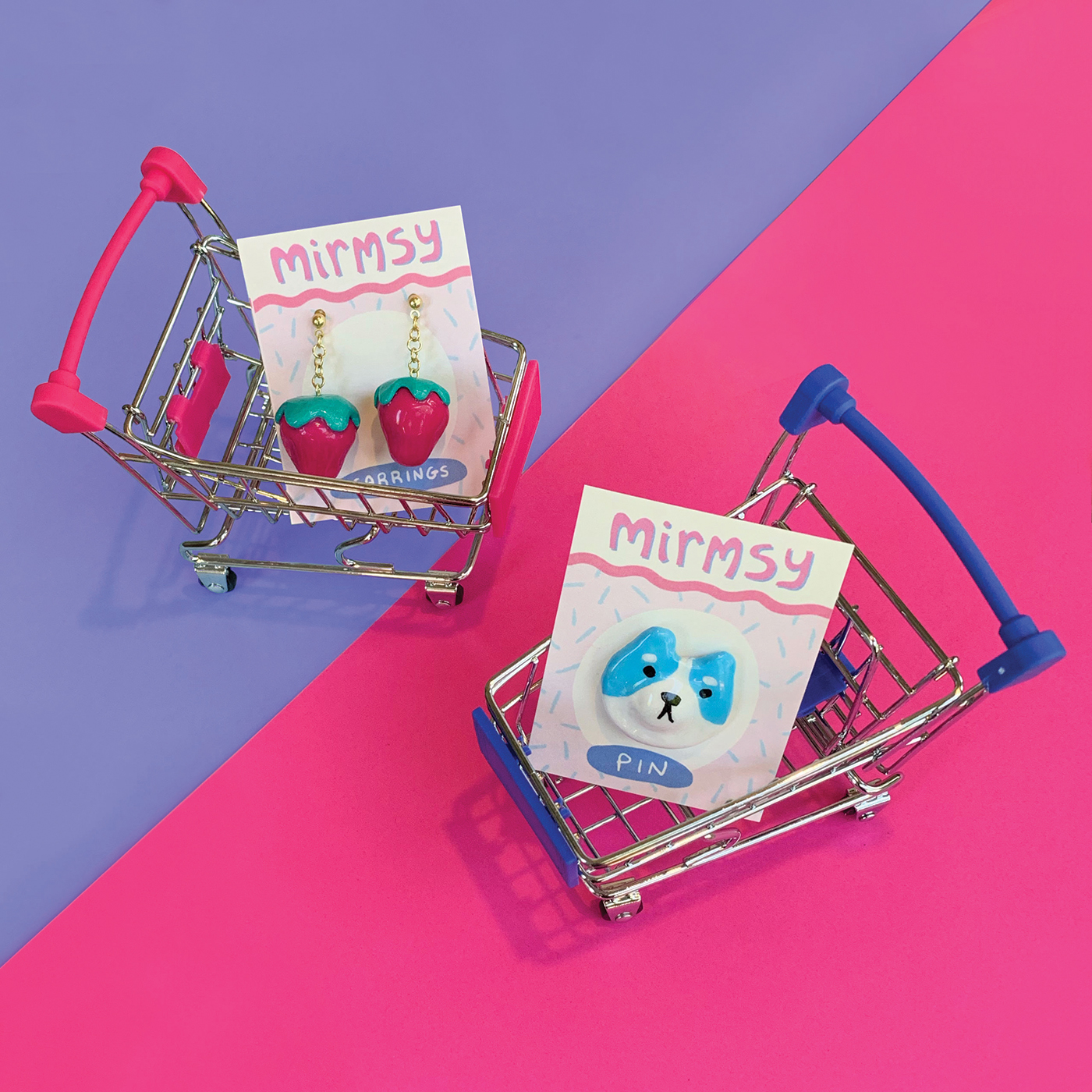 You can bask in Mirmsy’s hip grandma vibes (and squee at adorable pug photos) on her Instagram @mirmsy_. To browse all her wares—including earrings and prints—go to her website, mirmsy.com.