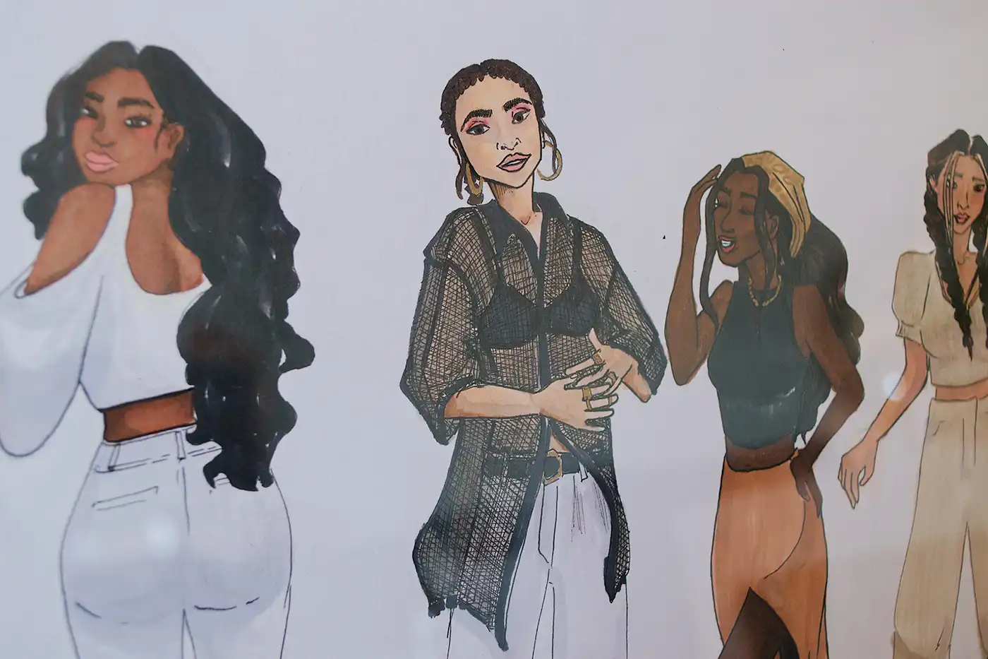 Mel Aphayrath revisited illustrating five years ago after an extended hiatus. “I have been working in airplane mechanics, and I lost myself in [work],” Aphayrath says. “One day I picked up my pencil and I felt alive again.” From there, she started working with markers and began filling up sketchbooks with images of people, fashion and love. Each layer of pencil and marker reflects life’s own layers. “What I’ve learned with illustration is that there is a process of patience. You have to lay down a color and let it sit,” says Aphayrath.