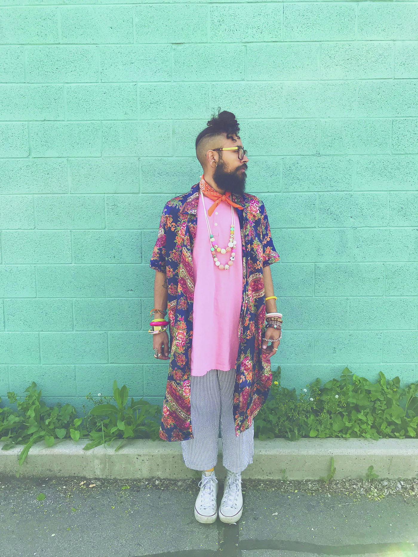 Stepping outside the limits of gender allows people to express their true authenticity, but it also makes fashion a hell of a lot more fun! August loves to create standout outfits from an unlikely pair of vintage pieces, and finds even more joy sharing their origin stories. “It’s such a sweet moment for me when I’m like, ‘Oh, this is a vintage Victoria’s Secret robe and these pants are just capris from an old lady!’” August says. When it comes to fashion, Trashpaca’s philosophy boils down to this: If you like it, and it’s comfortable, then wear it!