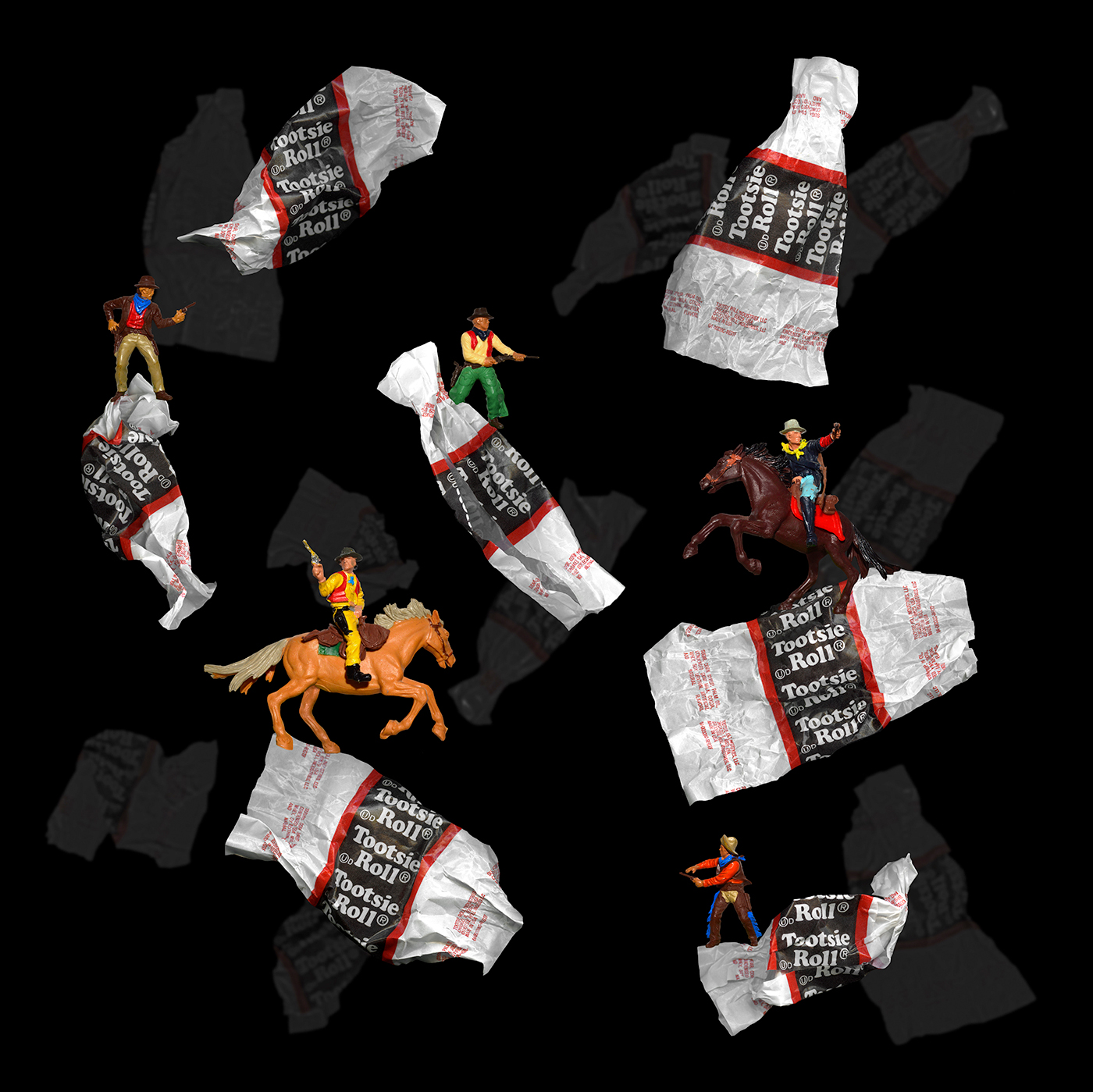 Quarantine Ephemera: Tootsie Roll Romp, 2020, 30×30, digital collage.