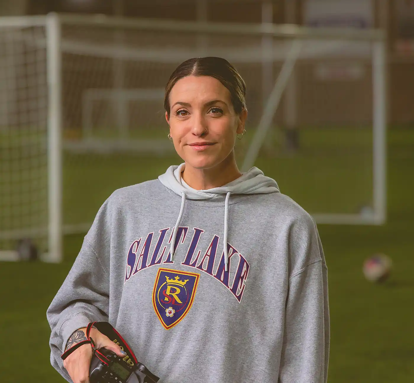 Since 2020, Lee has been Real Salt Lake’s Team Photographer. She gets to work with like-minded videographers, graphic designers and social media managers who all want to connect with the community through a love of the game. “[It’s] a huge department that has the goal to engage with the community and get new fans, creating this really cool experience that is live sports,” she says. According to Lee, the team grinds on promotional projects and decides what that is going to look like for the following year.