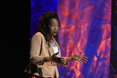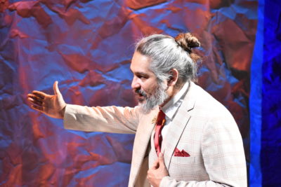 When it comes to set design, I’m typically a proponent of the philosophy that “more is more,” but the hyper-minimalist set created by scenic designer Janice Chan effectively complements the stripped-down script. The smattering of geometric stools is familiar to anyone who has ever performed a contemporary play in a black box theater, but the crinkly layered backdrops echo the idea of second chances, as if someone had crumpled up a large piece of paper, changed their mind and flattened it out again. The stage is illuminated by lighting designer Emma Belnap’s undulating blue and purple glow, which give it an almost aquatic feeling. Sound designer Cheryl Ann Cluff created the low, unsettling humming that echoes throughout the play by manipulating recordings of the actors’ own voices at different pitches.
