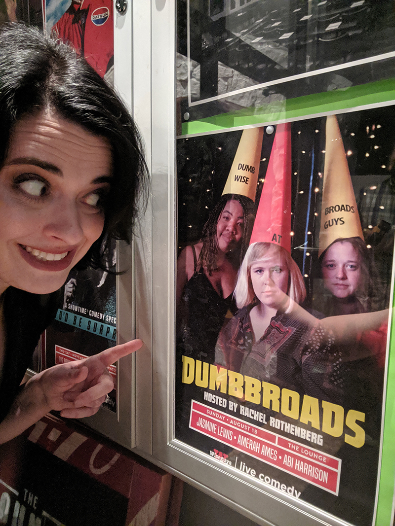 After cultivating a lifelong passion for comedy through a love for Mae West and Sarah Silverman, Rothenberg finally took the dive into stand-up in March of 2016. “I spent a really long time overcoming stage fright,” she says. “I straight up blacked out from anxiety—no alcohol, just fear—for the first year and a half that I did it, every time I did it.”