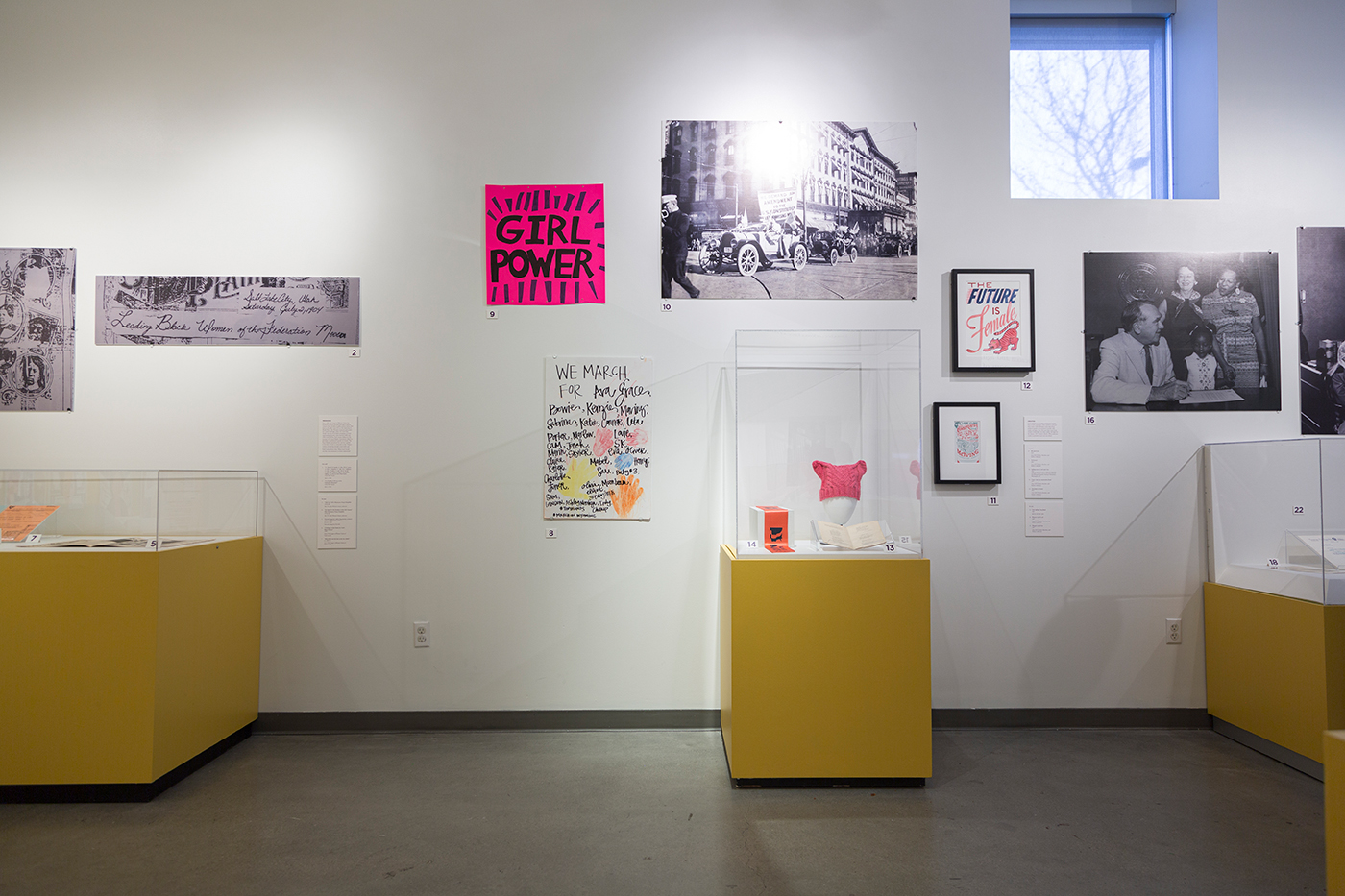With objects pulled from the Willard Marriott Library Special Collections, including Congressional campaign posters and brochures from Ivy Baker Priest’s campaign (Treasurer of the United States from 1953–1961) and historical photographs such as the “Campaign of 1915, Utah Senate Deputation,” the exhibit tells the story of Utah suffrage and women’s rights in an object-centric way. However, the politically sensitive nature of the material is equally visible in what is not stated and how some objects are described. An example includes the caption of the 1915 photograph, which says the women “paraded” up Salt Lake’s Main street to meet with then Senator Reed Smoot, glossing over any similarities between contemporary and historical feminist marches through simple word choice.
