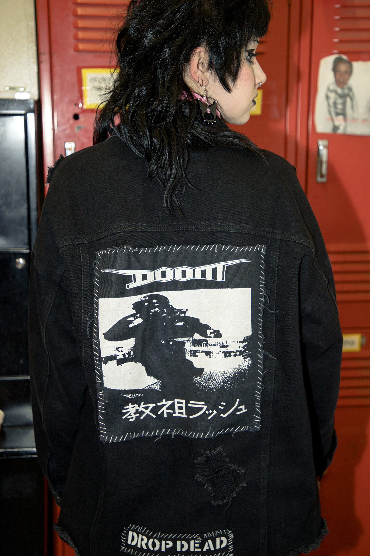 Anderson: I do vocals and write lyrics, my boyfriend Spencer plays guitar, and our buddy Tyler does drums. I mostly write angry political songs about killing cops and hating capitalism and stuff like that, but sometimes I just complain about my petty personal problems. We play powerviolence because it’s fun—it’s high-energy, angry, chaotic, therapeutic. I guess our music ties in with my style because they’re both constantly evolving creative outlets where I do whatever I want without limitations.