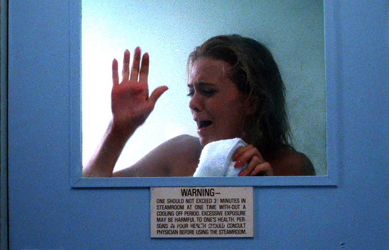 Another tech-gone-evil slasher, Death Spa pits spandexed workout dopes against a haunted gym—as the pitch says, “You’ll sweat blood!” A bloodthirsty ghost infiltrates a health club’s computerized control system and starts killing gym rats with exercise machines, weight gear and overheated saunas. Death Spa is stoopid to the max, but it did introduce gym sushi(!).