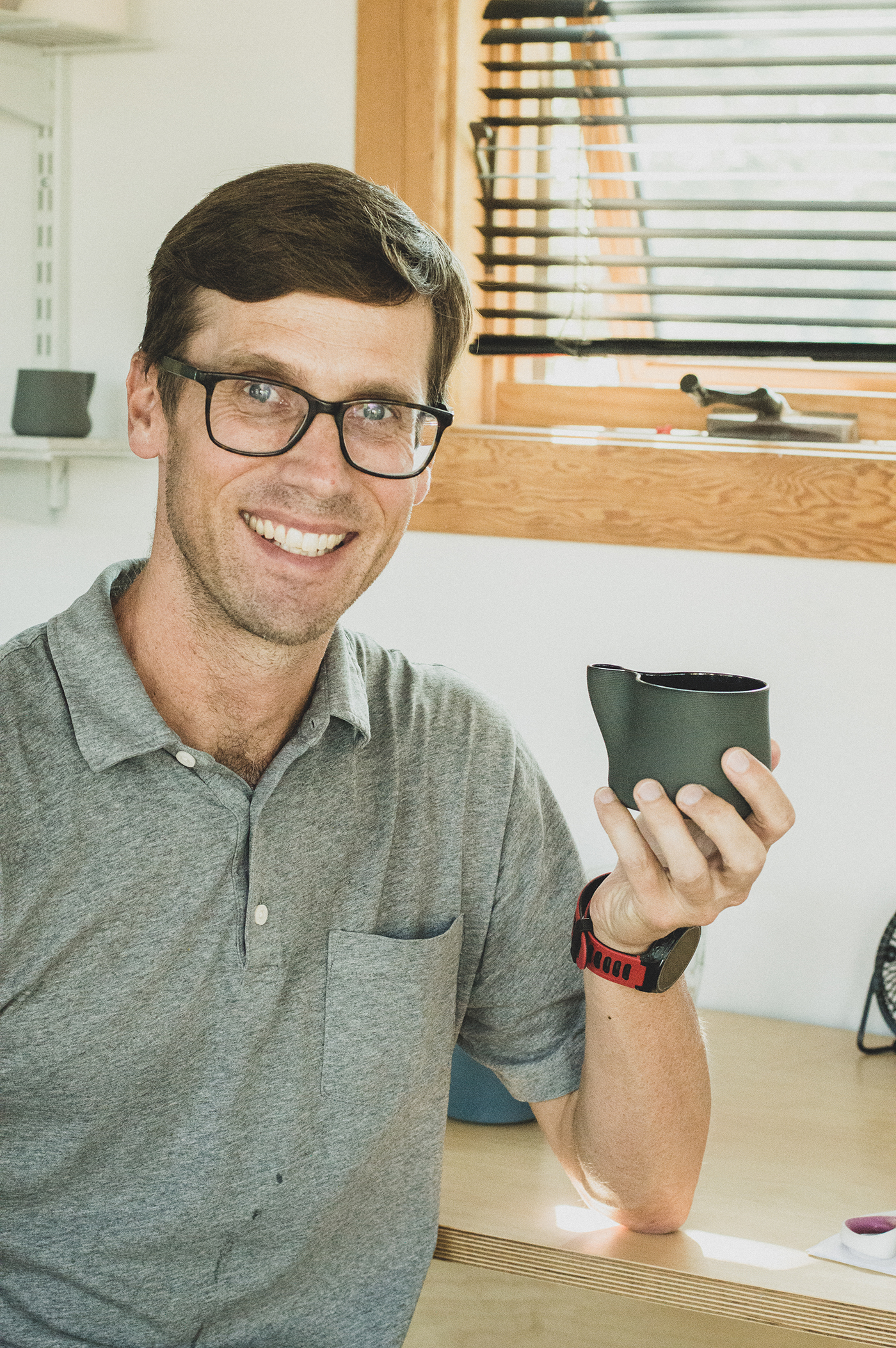 If you’ve ever grabbed a coffee or tea from Curiosity in the Central Ninth neighborhood, you may have enjoyed it in a stylish and modern “Love Handle” mug. That mug was digitally designed and 3D printed with clay at Matt Sutton’s studio, madexbinary, where he makes all of his home goods.
