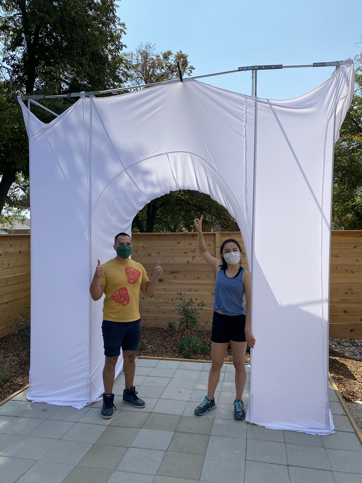 The piece was constructed over the span of two months, made out of white-knit jersey stretched over a zinc structure. Tran did much of the sewing while Moya assembled the frame, and the rest they troubleshooted together. Tomorrow’s Monument is the creators’ idea of accessible commemoration. It is a monument that can travel to the people and not the other way around. The piece was made to be taken apart and reassembled, giving their audience the idea that this is a memorial to which we all have access. In fact, as I approached the Sugar Space in Downtown Salt Lake City, the piece was still being assembled, a sort of symbol of the ongoing commitment and restructuring of ourselves and our biases.