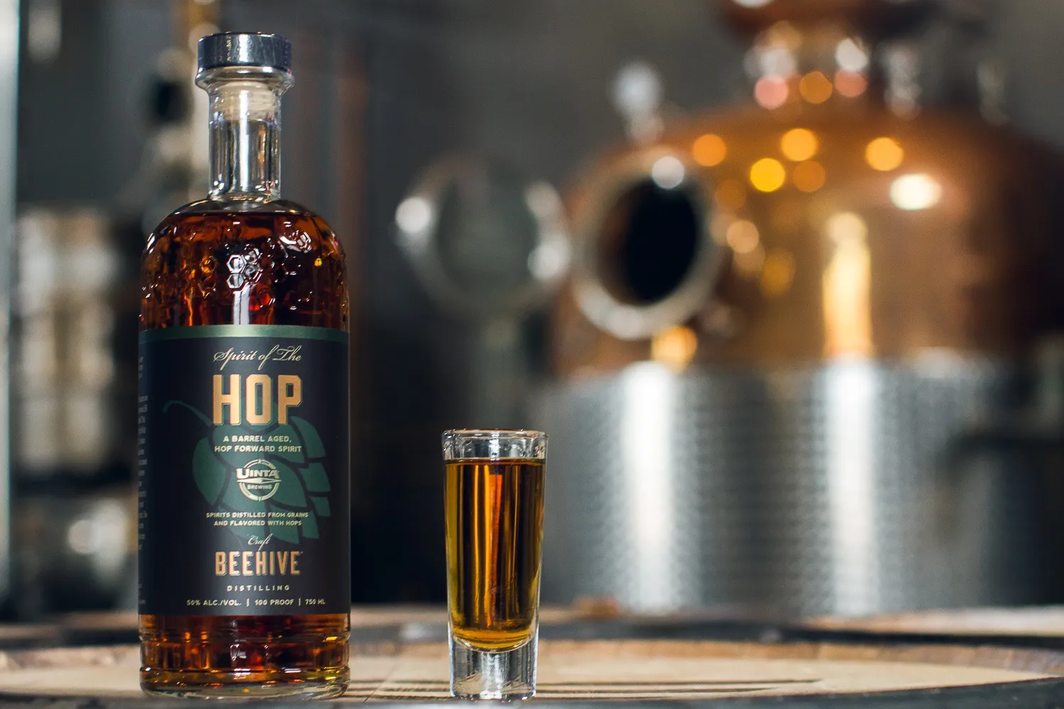 “I knew it would be weird, but we might as well throw it in [the still] and see what the hell happens,” says Chris Barlow, one of the founders and co-owners of Beehive Distilling. “It tasted really funky right off the still, but it mellowed out a lot in the barrel.” While this was Beehive’s first foray into hopped spirits and distilling beer, the journey was nearly identical to their whiskey-making process. “Whiskey is essentially beer,” Barlow says. “It’s usually a different grain, unless you’re doing a wheat whiskey or a barley whiskey, but it’s essentially the same process.” While neither spirit can technically be called a whiskey due to the addition of hops, these “distilled spirit specialty beverages” honor the techniques of American whiskey in unique liquors that can’t be recreated. “We never work with hops in the distilling world; hops are [used] to flavor beer, not spirits,” says Fowler. “But the smell that was coming off the still was so floral—the most incredible thing you’ve
