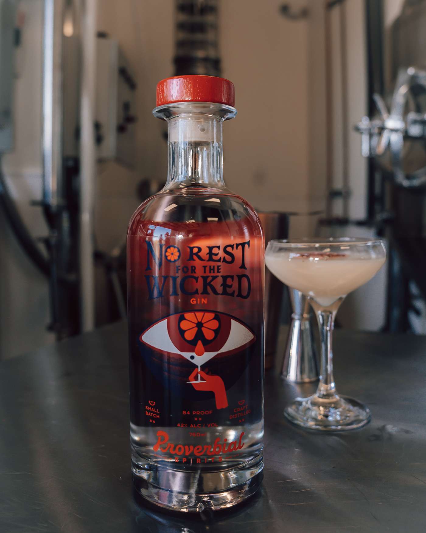 Proverbial Spirits currently has two spirits available—Loose Lips Sink Ships Rum and No Rest for the Wicked Gin.