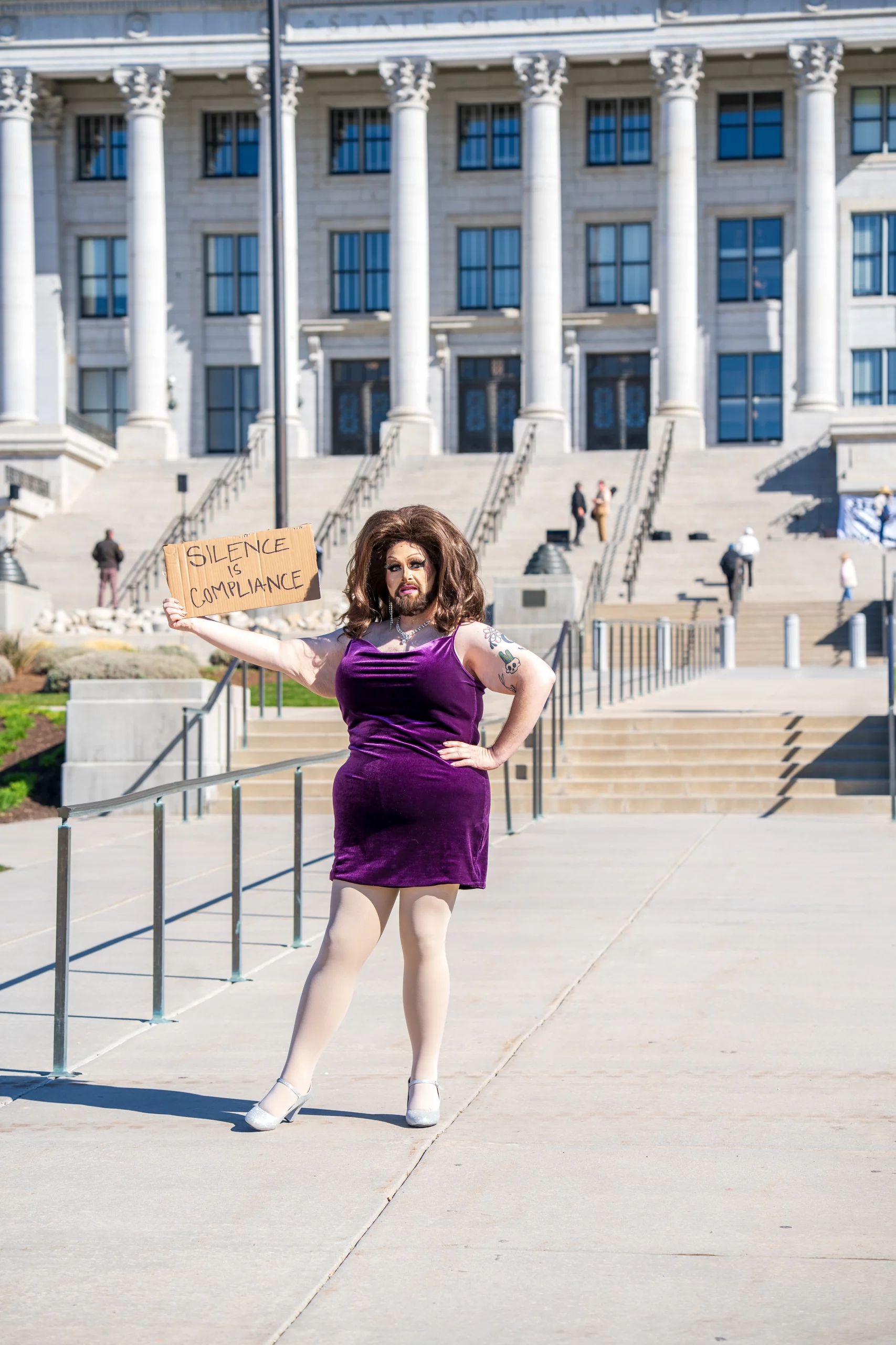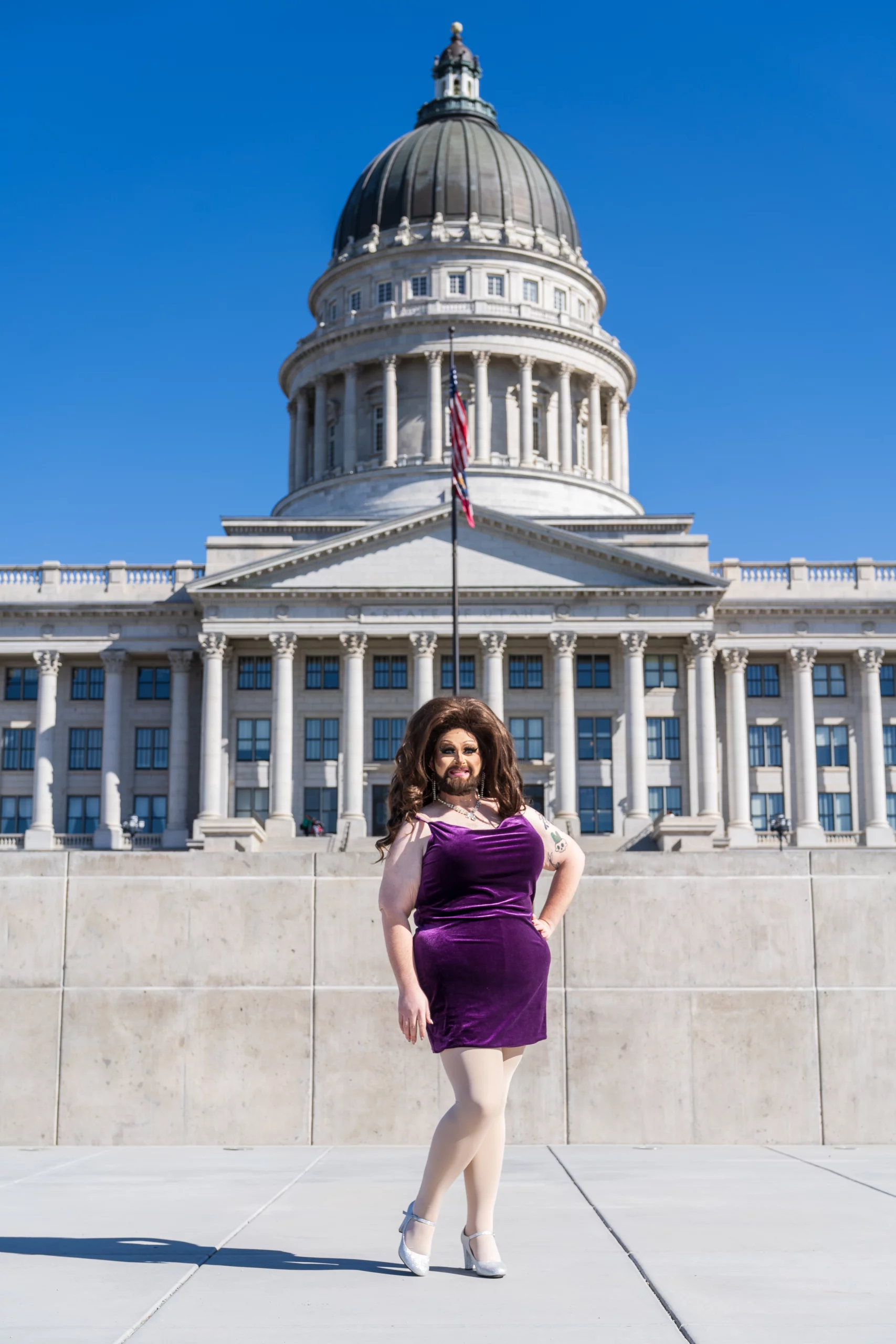 in high school through a conversation with a fellow queer student. This interaction would ignite a passion that led to her becoming one of the boldest and most beloved figures in the Utah drag community.
