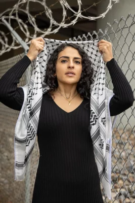 Abu-Dan wears her keffiyeh—a traditional scarf that has come to symbolize the Palestinian liberation movement—with pride. “There’s been a lot of people who have tried to put me down for being Palestinian, for being Muslim, for being a woman,” she says. “Even though I feel like I’m never doing enough, I’m proud that I’ve never shied away from who I am.”