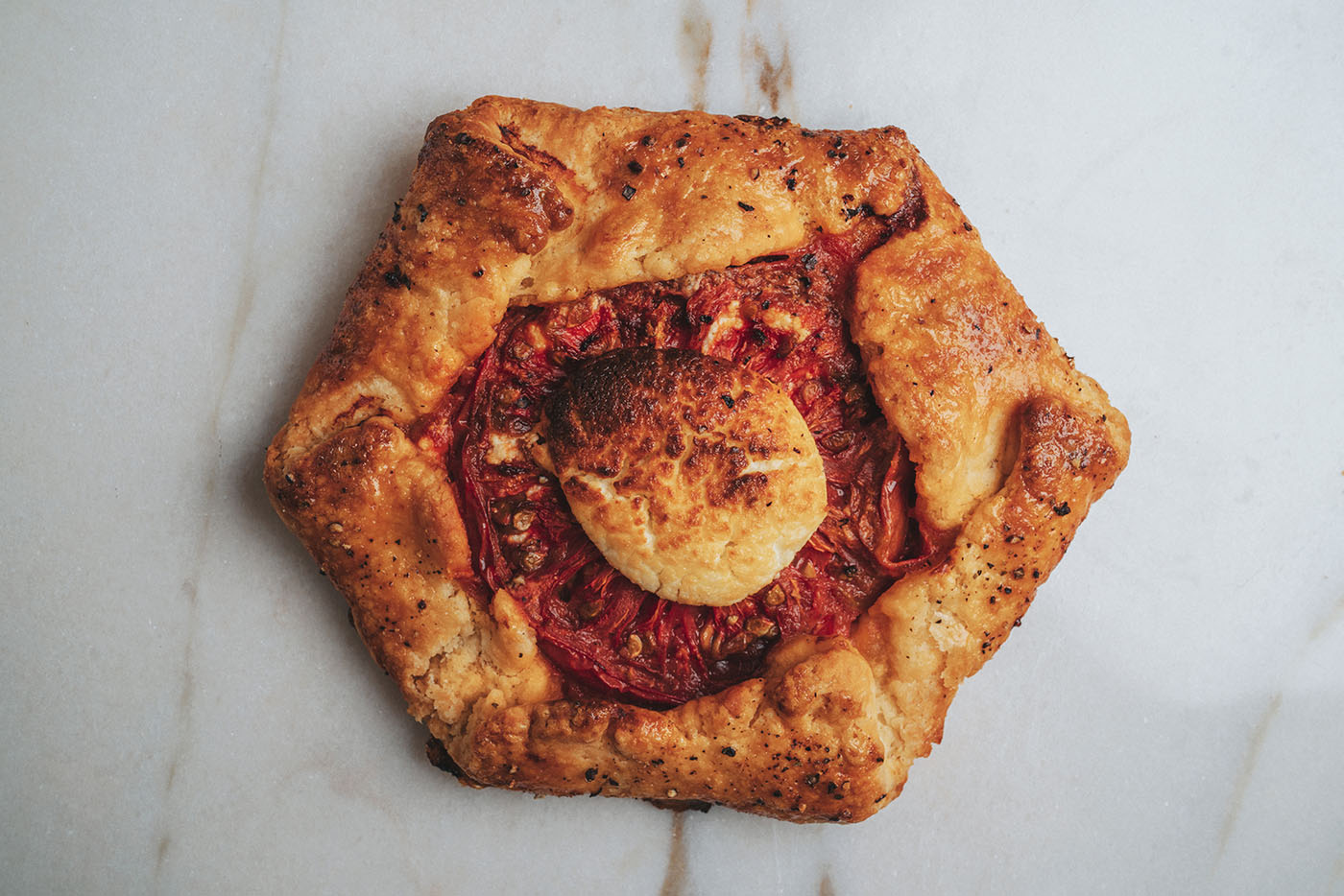 Slice the heirloom tomato into thin pieces, roughly ¼-inch thick. Sprinkle slices with salt, pepper and oregano on each side and set aside. Cut two–four pieces of the Seahive cheese into flat sheets about two inches in diameter. Take the remaining cheese and lightly coat in olive oil. Microwave the remaining cheese for one–two minutes until soft and malleable. Place a single tomato slice in the center of your galette. Layer with the sheets of cheese. Add another slice of tomato on top. With a spoon, scoop a bit of the microwaved cheese into a ball and place in the center of your galette. Begin folding in your edges. Brush the edge with olive oil and top with salt, pepper and oregano. Bake at 375 degrees until the crust has a golden-brown color (approx. 30–35 minutes). Let cool and enjoy!