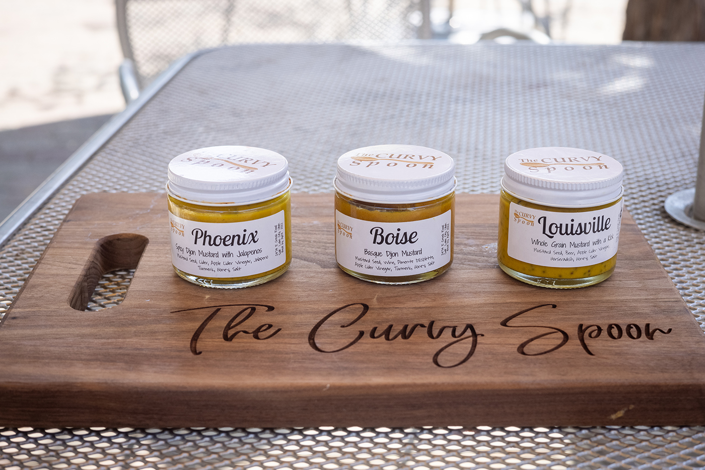 The Curvy Spoon is a small-batch, artisanal mustard company owned and operated by Valerie Koonce. “People either love it or hate it,” Koonce says, “but mustard is a little magical, too.” With simple ingredients, she is able to create a wide range of options, from her personal favorite, the ALTA (with red wine, cranberry, and shallots), to the best-selling LOUISVILLE (with horseradish). Her husband’s experience in the beer industry helped them experiment with different blends using beer, cider and wine. “The flavor possibilities are endless,” Koonce says.