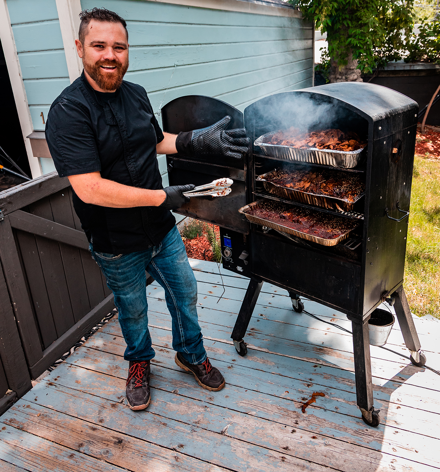 Blatchford aims to expand the minds of those who previously might have been hesitant to try vegan foods with Blatch’s Backyard BBQ. His menu, one that is entirely in-house and from scratch, is roughly 95% vegan and offers mouth-watering dishes such as Fried ChickenLESS Sandos, Vegan Reubens and CodLESS Tacos. A sliver of the menu is reserved for the meat eaters out there, but he is confident that once you try his unique take on vegan BBQ, you won’t regret it. While his recipes are a closely guarded secret, he did share that he uses a blend of powdered, dehydrated smoked mushrooms, herbs and vegetables, a mixture which he adds to a slow-extracted vegetable broth and a protein-rich flour to create “the magic.” His favorite part of the whole process is welcoming customers into his home. “I love to visit with my customers, talk about my process, show them my garden, do taste tests and meet new people,” says Blatchford. Before he converts his bedroom into a walk-in cooler, he would love to expand when the opportunity presents itself, and as he says, “Just imagine where the future will take Blatch’s. This is only the vegan-ing.”