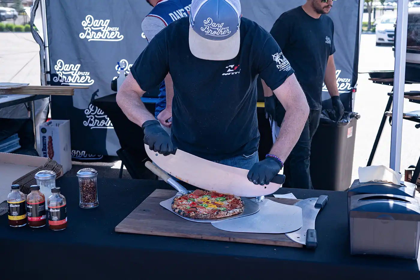 Originally a mobile catering service from San Diego, Dang Brother Pizza expanded to Utah this year as an innovative new food truck. Making their first appearance at the Winter Market in Ogden, Dang Brother is back this summer with exciting menu items and a brand-new oven crafted from a vintage fire truck. With the promise of wood-fired pizza made from scratch, my friends and I were off to Farmers Market Ogden to try this unique experience for ourselves.