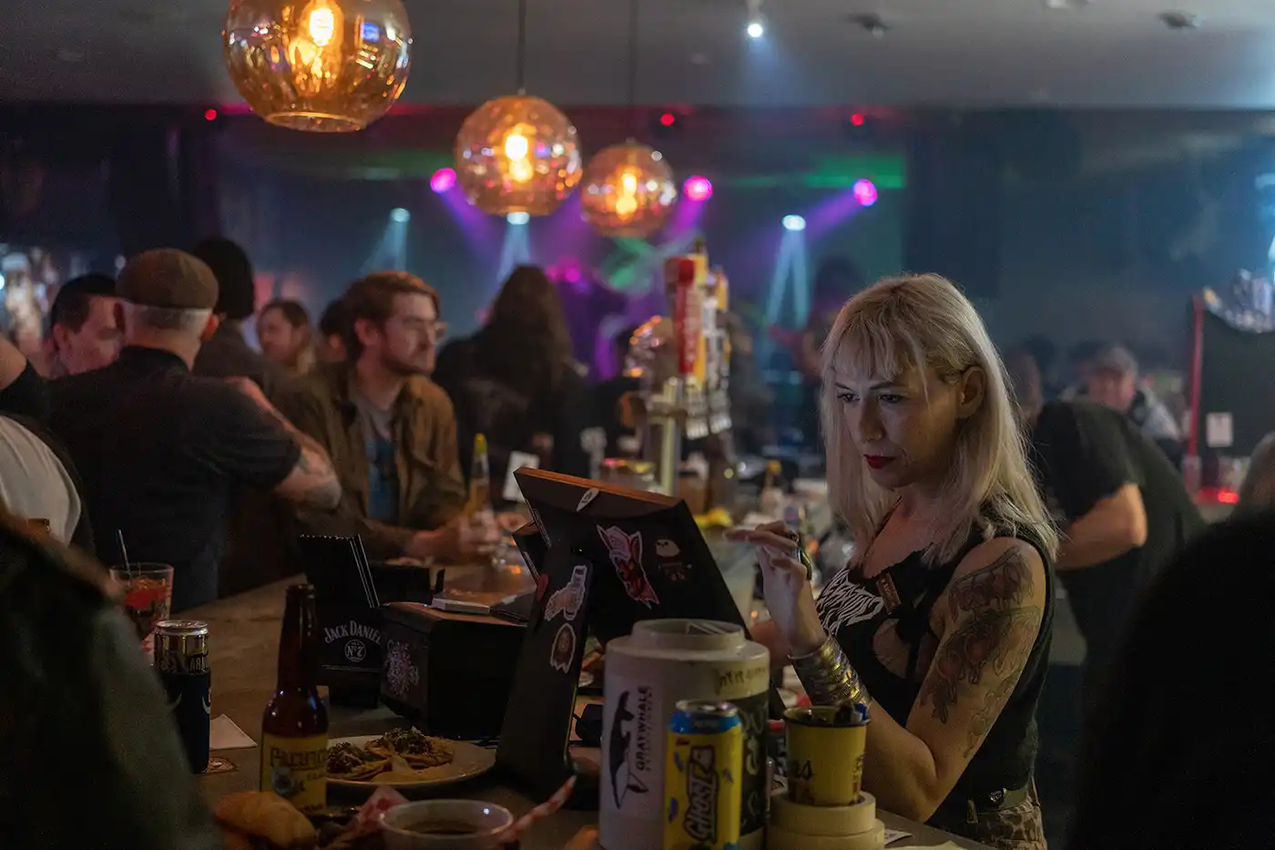 Spence and Maloney’s push to open Aces High stems from their passion garnered through years of experience within the local, underground music scene. “It’s definitely part of the fabric of our existence,” says Maloney. “We get to meet the best people, not only in SLC but around the world.” What started as pillow talk between her and Spence turned into reality when they signed their lease in January 2020. Despite the pandemic jeopardizing their original plan, the duo pulled through and officially launched Aces in September of that year. “We ran out of our building funds, so we had to do it,” says Maloney. “2020 was pretty scary. We didn’t have a liquor license, and we couldn’t do shows, but by January 2021, we got our license and it’s been uphill from there,” she says.