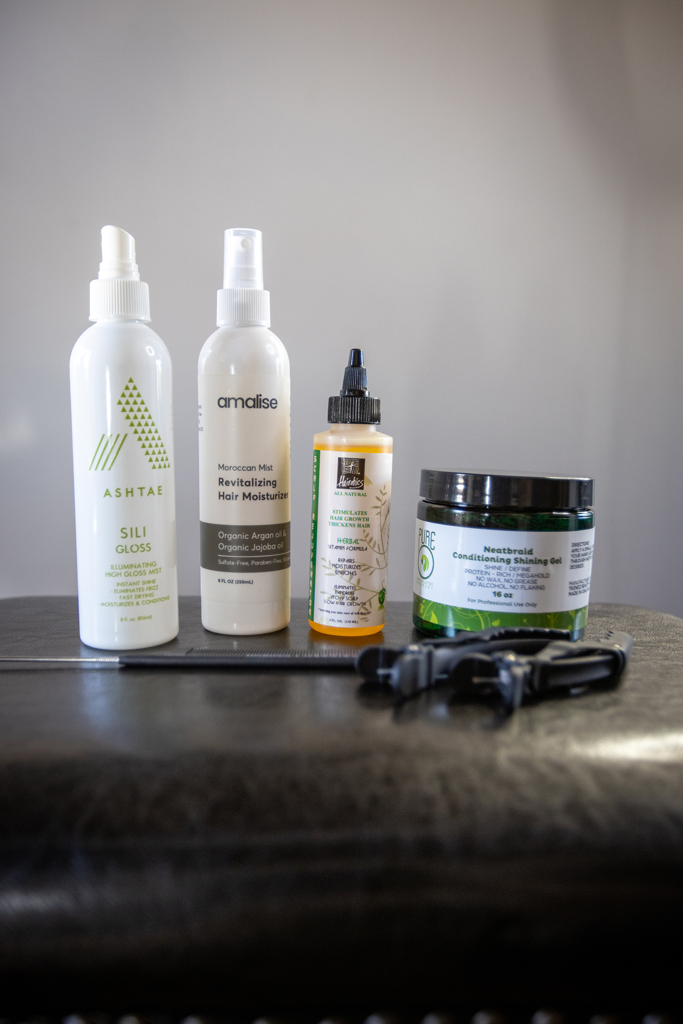 While Powell teaches and consults clients virtually, she also offers in-person, salon services including individual braids, cornrows, two-strand twists, locs and coils. Powell can also style some services with extensions, though clients are required to bring their own pre-prepped extensions.