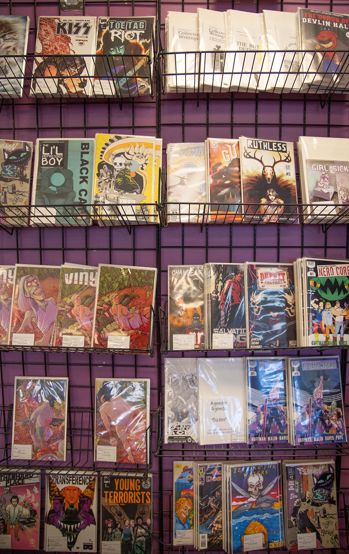 During the publishing hiatus of 2020, Black Cat Comics still had plenty of back issues and lesser-known titles for their customers to experience. The shop also carries a healthy stock of local and exclusive releases, offering exciting titles for comic book aficionados and collectors that are difficult to find anywhere else, such as House of Slaughter from BOOM! Studio. “You never know who’ll be the next ‘big thing,’ and it’s fun if you stumble on that early,” says Gage.