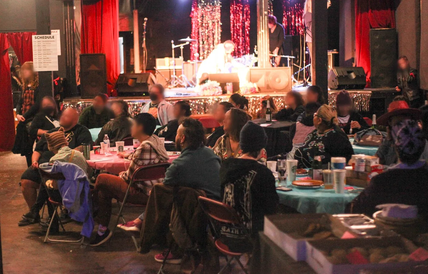 The event was held at The Beehive, a small SLC venue within the unassuming vegan eatery, Mark of the Beastro, located at 666 S State Street—a unique pun. Sponsored by Project Rainbow, ACLU of Utah, Armed Queers and SLUG Magazine, Transfeastival was coordinated to create a space for people to come together during Transgender Awareness week, which occurs from Nov. 13–19, as a way to honor Transgender individuals leading up to Transgender Day of Remembrance on Nov. 20. A complete Thanksgiving dinner met attendees as they entered the venue, from turkey and stuffing to pumpkin pie and sparkling cider. Volunteers worked hand-in-hand with Little Gay Garden to prepare a feast for the masses, with vegetarian and vegan options represented equally.