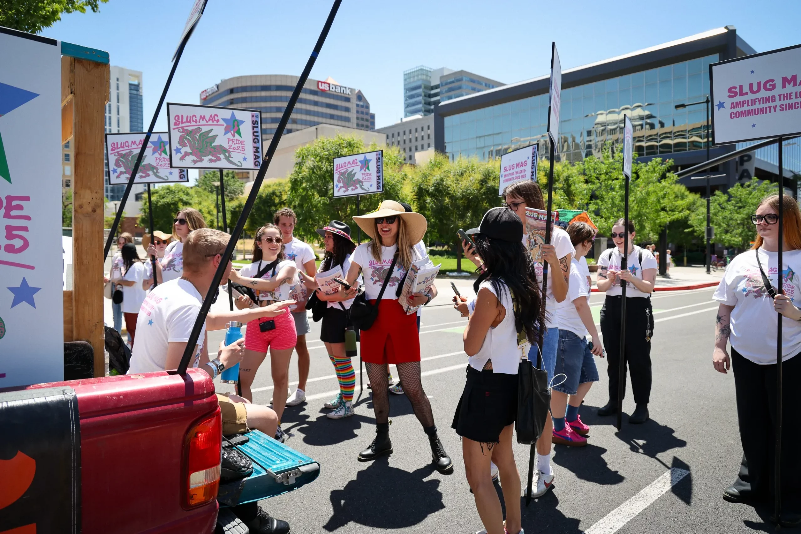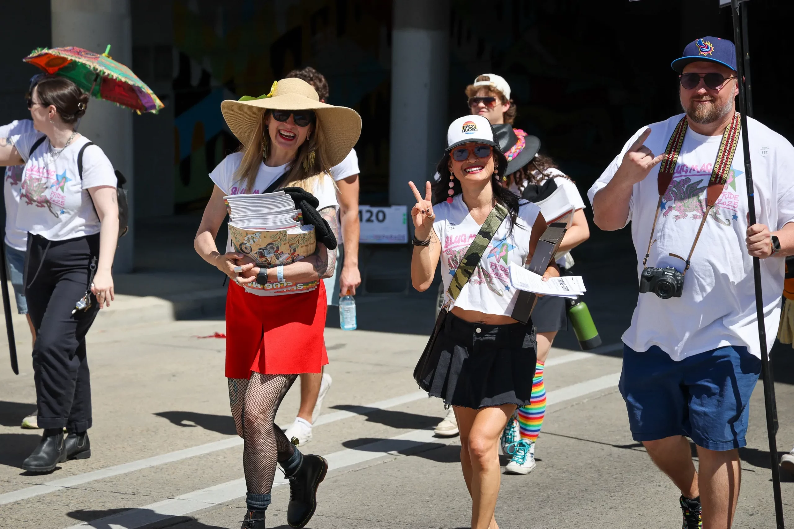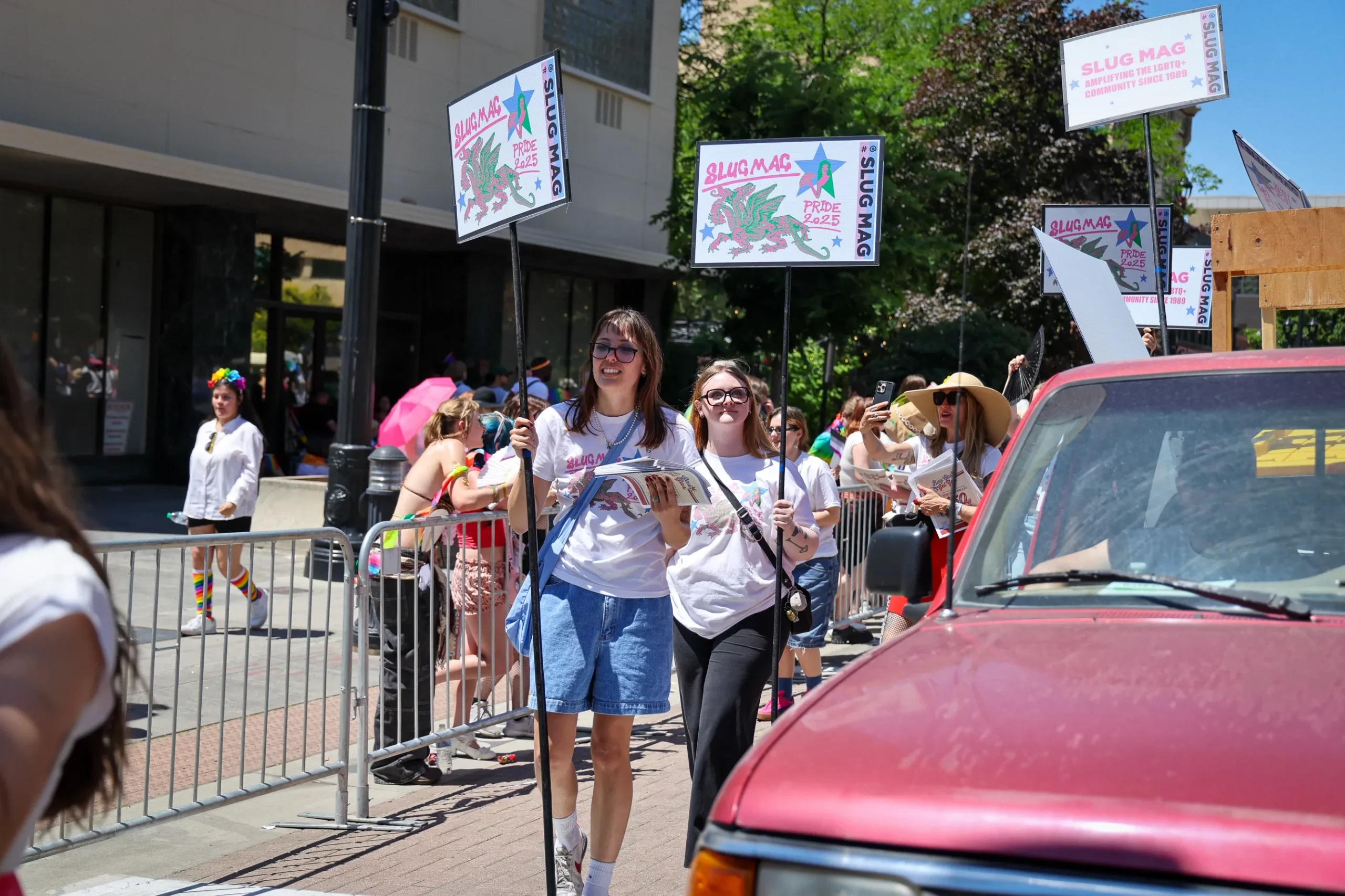 In between the Utah Valley University Queer Student Alliance and the Rainbow Classics of Utah, SLUG was there handing out June’s LGBTQ+ Pride Issue to eager attendees, while announcers introduced us at every block. Complete with signs, a bright red SLUG truck, our photographers riding around in pastel pink Vespa and matching tees designed by SLUG’s own Marketing Assistant Jackie Stigile, the team interacting with longtime readers, giving information about the upcoming Trans•Form celebration, and just enjoying the vibes of the parade, it was a treat to be there.