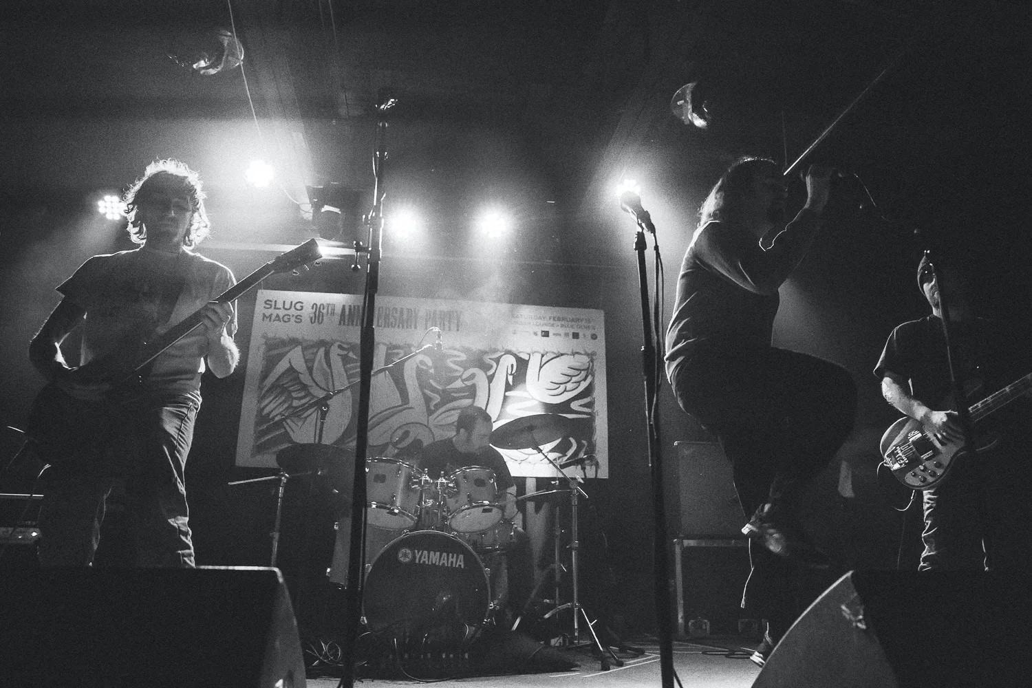 That’s a wrap, ladies and gentlemen! On the shivering, nose-biting night of Saturday, February 15, SLUG Magazine rocked the house (or houses) to celebrate three and half decades of local music and alternative communities at our 36th Anniversary Party! Based out of both Blue Gene’s and Urban Lounge, this sold-out, larger-than-life event showcased 36 bands and artists, each given three minutes to blow the brains out of the audience. Between heavy-hearted chord riffs and spirit-lifting synths, attendees partook in handcrafted, exclusive cocktails like the “Tart Typewriter” and “Hot Off the Press,” featuring local spirits from Dented Brick Distillery and Eight Settlers Distillery.