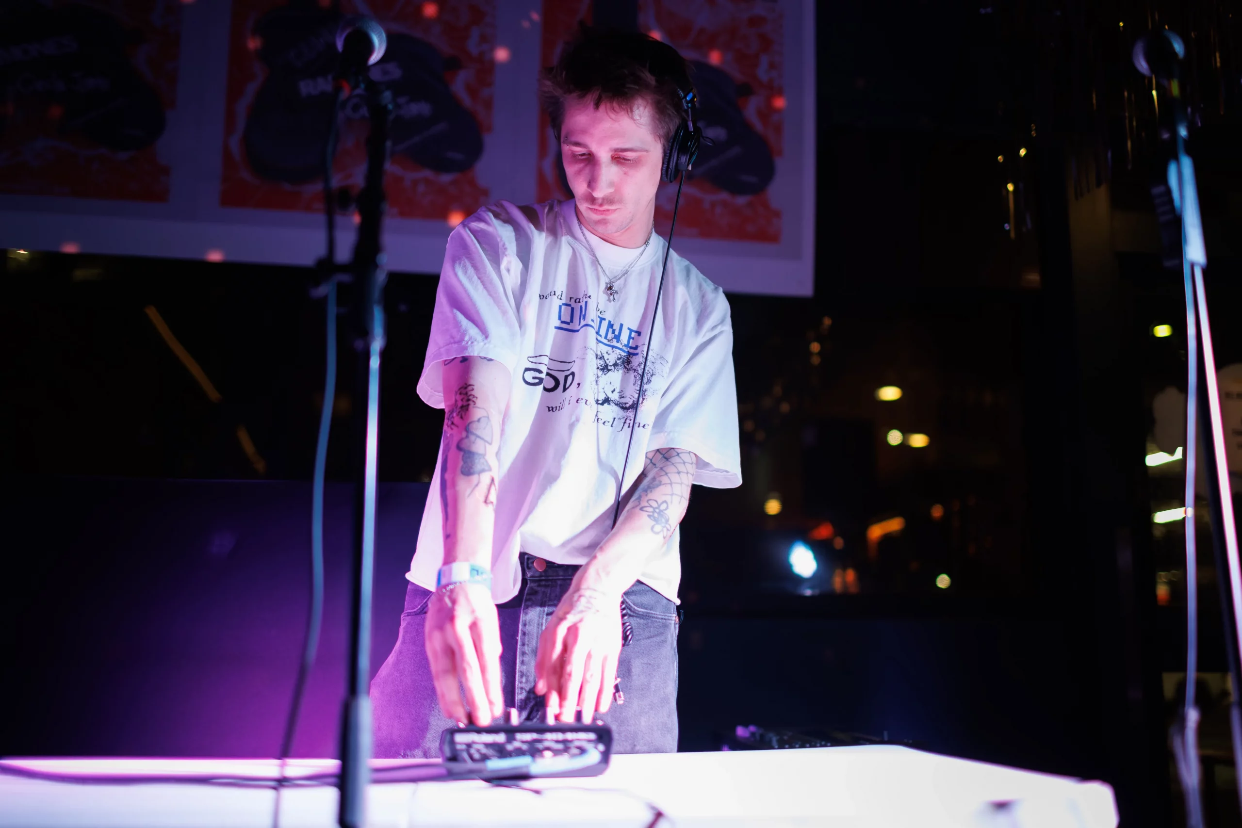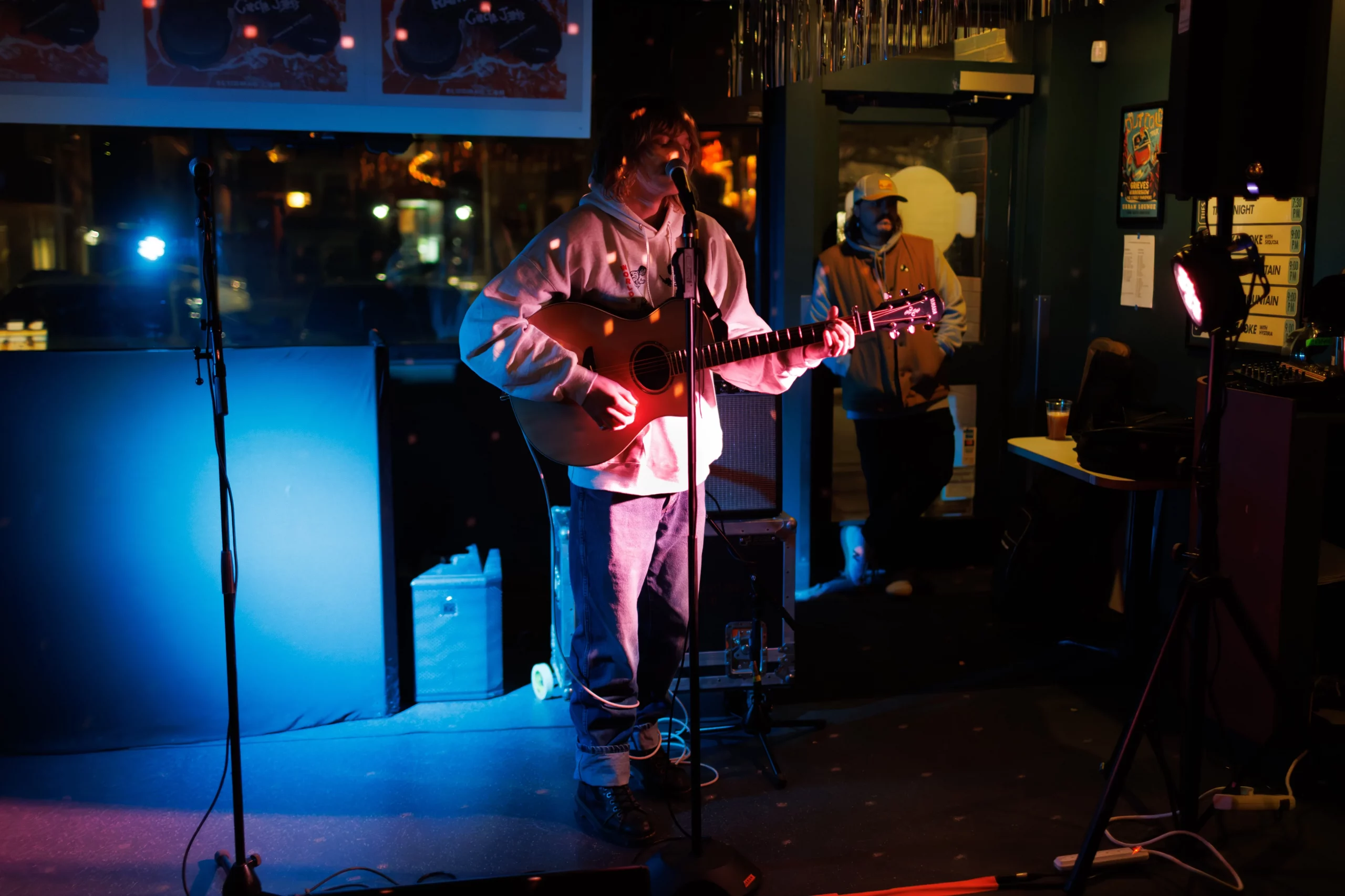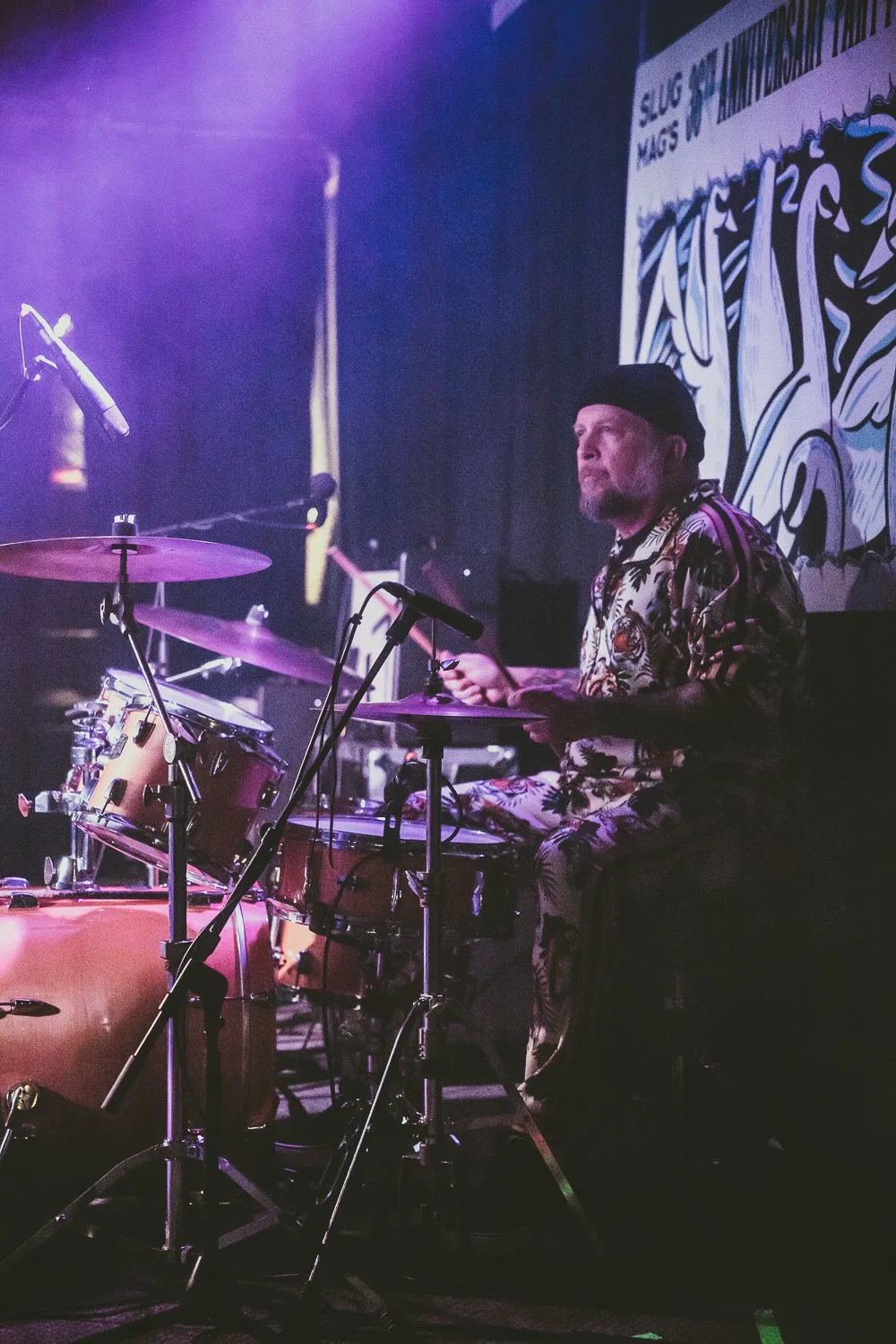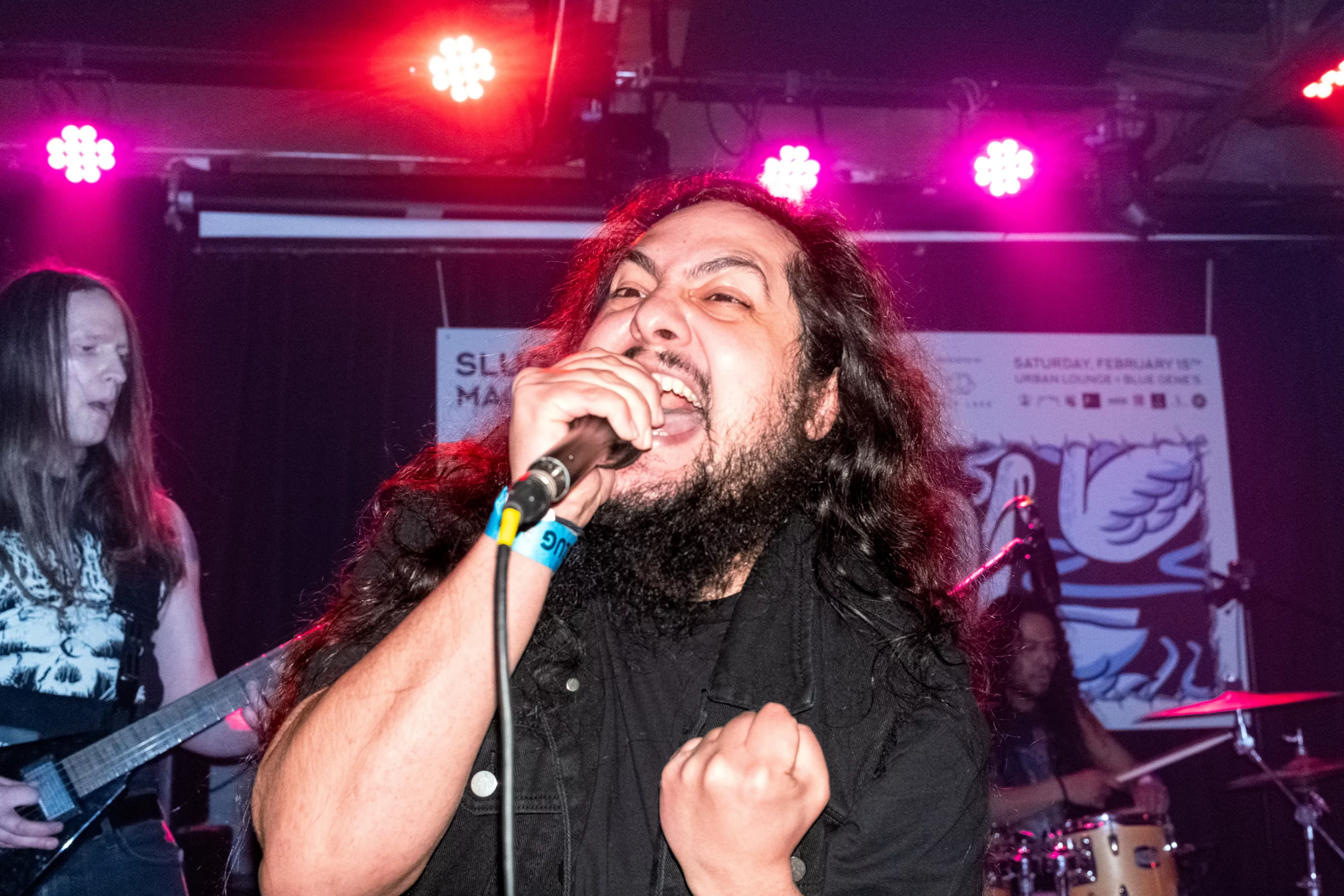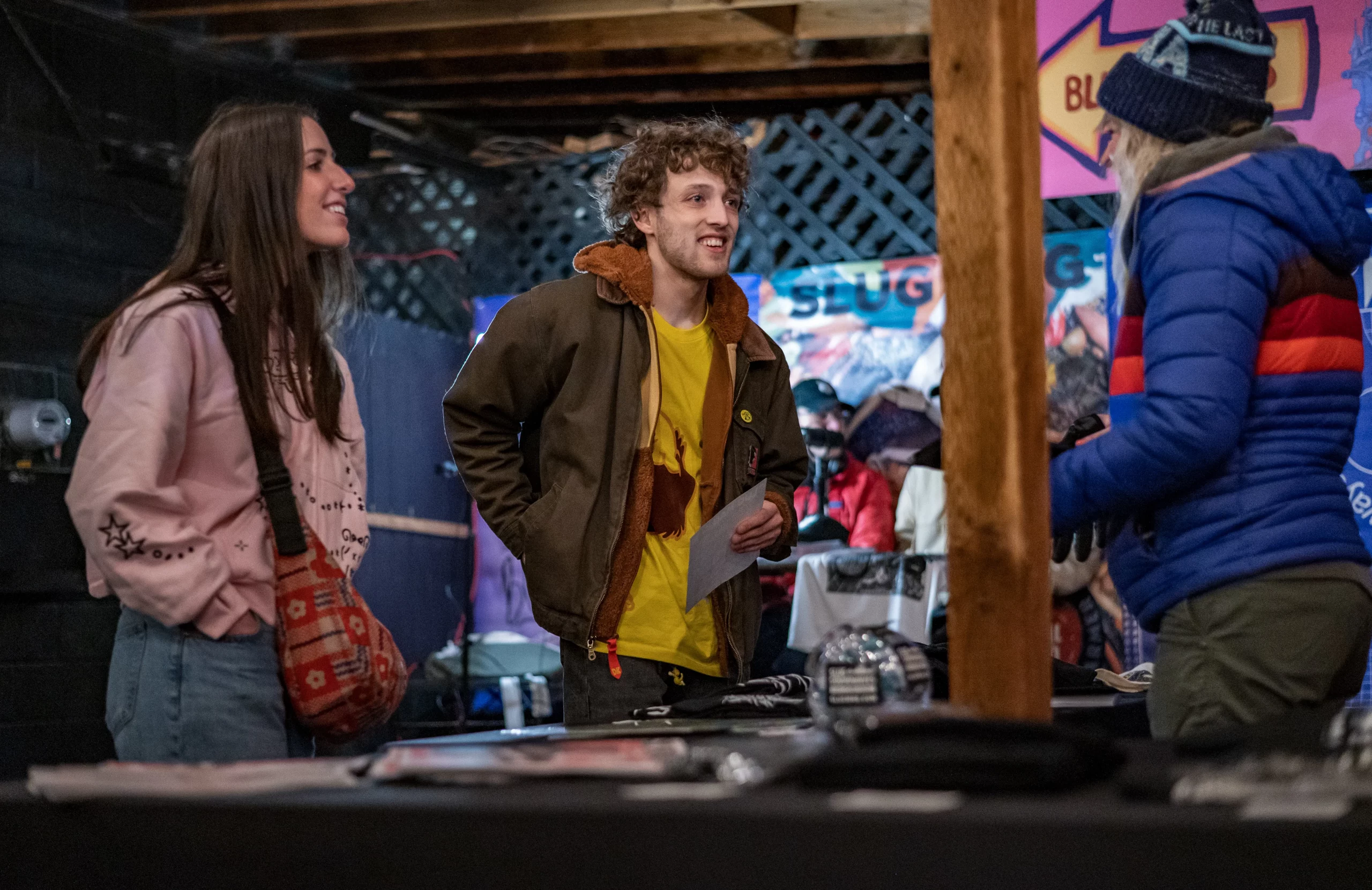 Guests who joined the party came from all walks and musical tastes, from headbanging punk rockers to lo-fi retro enjoyers. Those who really wanted a night to remember could get their own piece of SLUG Magazine merch, including a freshly screen-printed T-shirt by Ritual Print Company with February’s issue cover right on the chest. In between sets, guests could even listen to a special, live-recorded episode of our popular podcast SLUG Soundwaves, as Producer Nathan Mcquiveyand Assistant Editor William Hugheschit-chatted with bands fresh off the high of a live set.