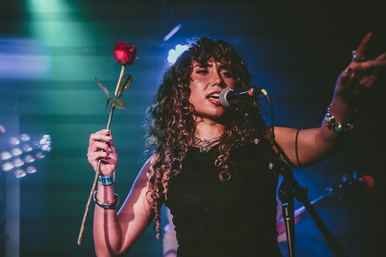 Those who were slightly lost in the dark or felt out-of-place were welcomed warmly to our four heavy-hitter MCs. The beautiful, glam-bomb Ms. Meredithand SLUG’s party animal Editorial Assistant Alton Barnhartserved looks and luxury to the Blue Gene’s crowd, while the talented comedic duo of Kate LeDeuce and Jeremy Cardenas lightened the mood before every fist-pumping musical rumble! The four greeted the crowd with familiar yet entertaining fuel between each band, providing a hyped-up rally to keep the show going!