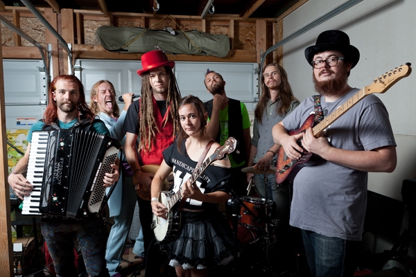 The band got its start when longtime friends Moses McKinley and accordionist Canyon Jack Elliott had the idea to pair a mandolin and a 50-pound accordion (which Elliott refers to as “Thor’s Hammer”) together to write songs. Originally, the band included Tanner Bray on banjo and Jeremy Adams on drums, both of whom eventually left the band, replaced by rotating drummers Curtis Stahl and Mike Lewin, and Box on the banjo. Along the way, the band picked up Jared Hayes on bass and Passey, effectively rounding out Folk Hogan’s distinct punk and folk sounds. This band is full of dedicated musicians, but ask them and they will tell you they’re more than that. They’re entertainers by nature. “You don’t have to try to be an entertainer. If you’re enjoying yourself, people are just entertained,” says Box. Hayes poses the question: “What is music if it’s not entertaining? Is it worth putting your time into?” The members of Folk Hogan agree that it isn’t.