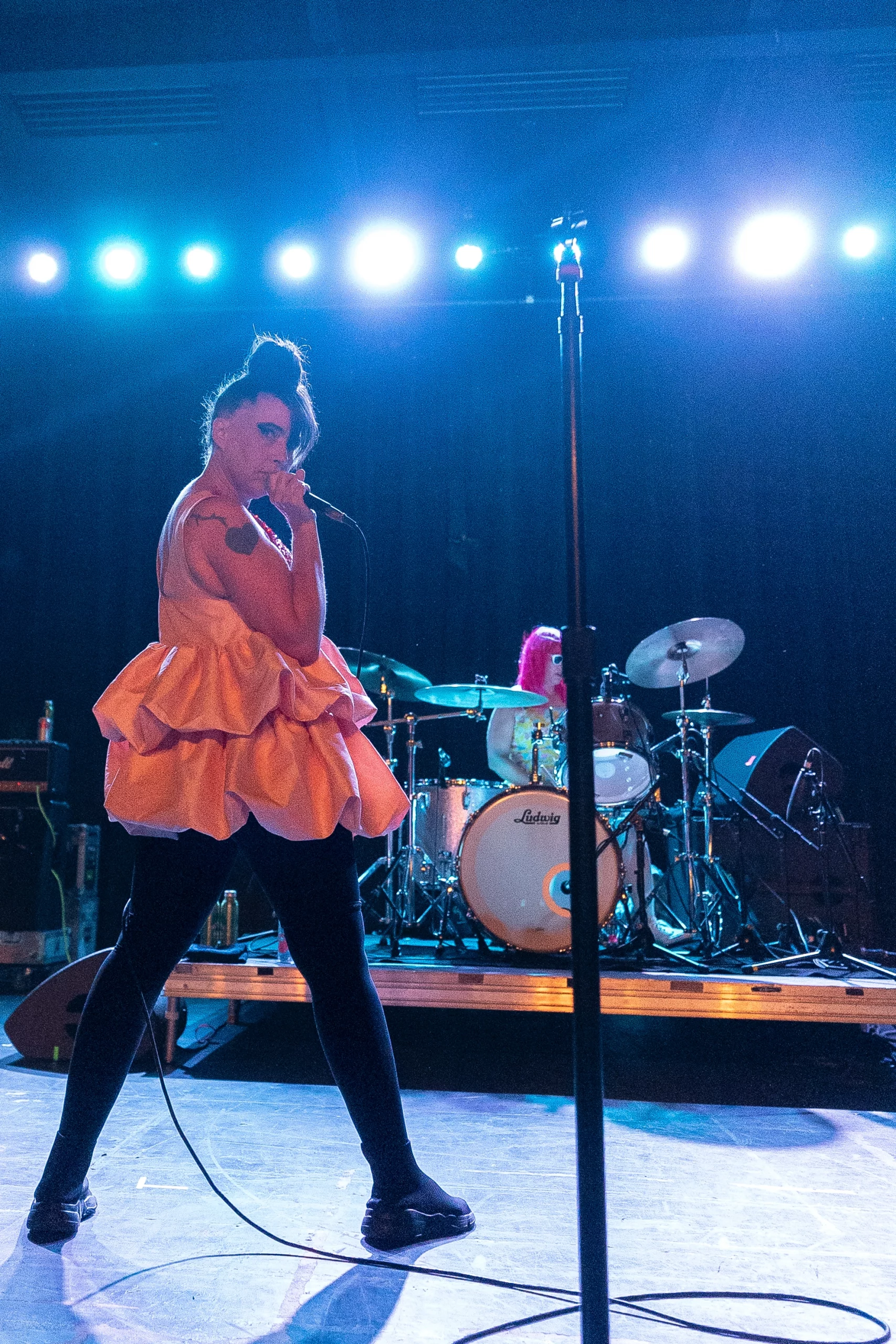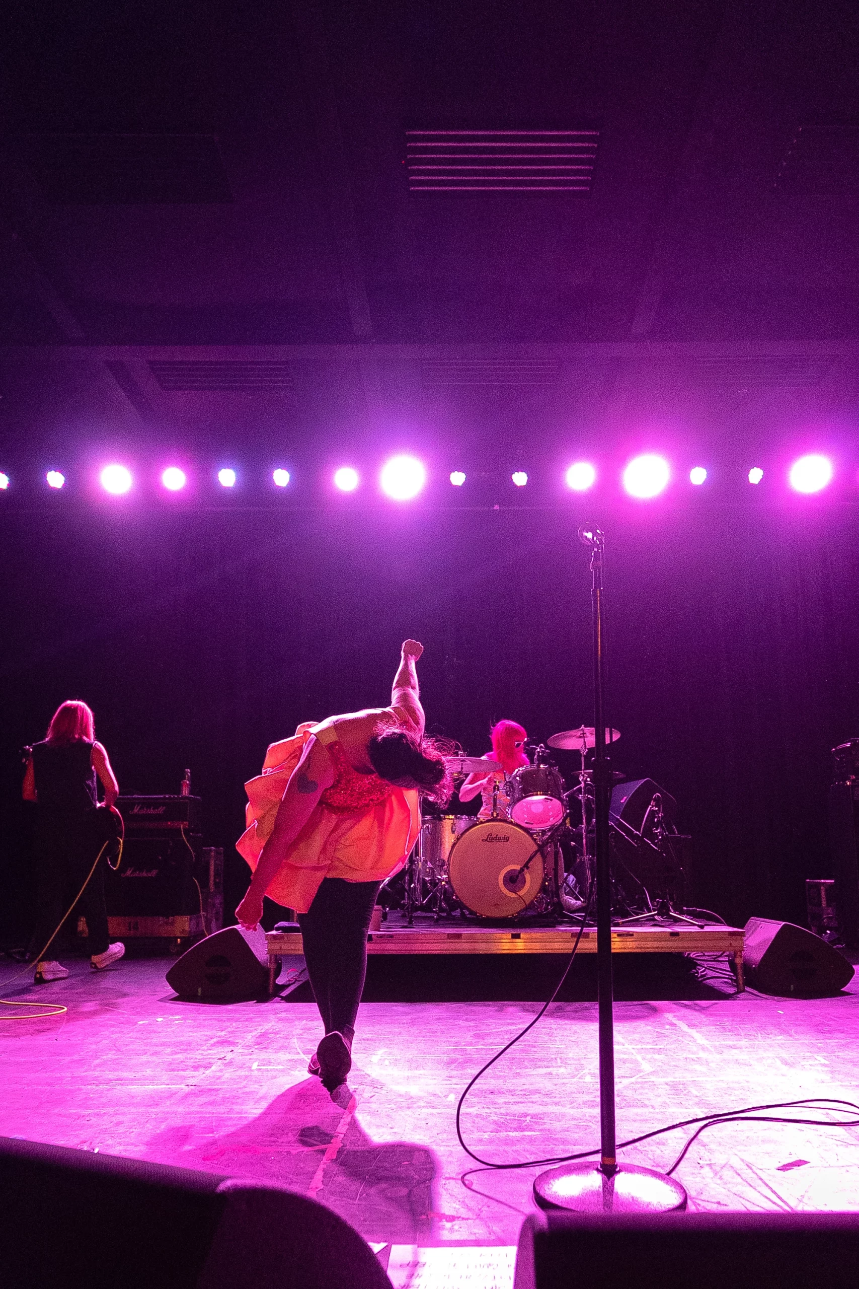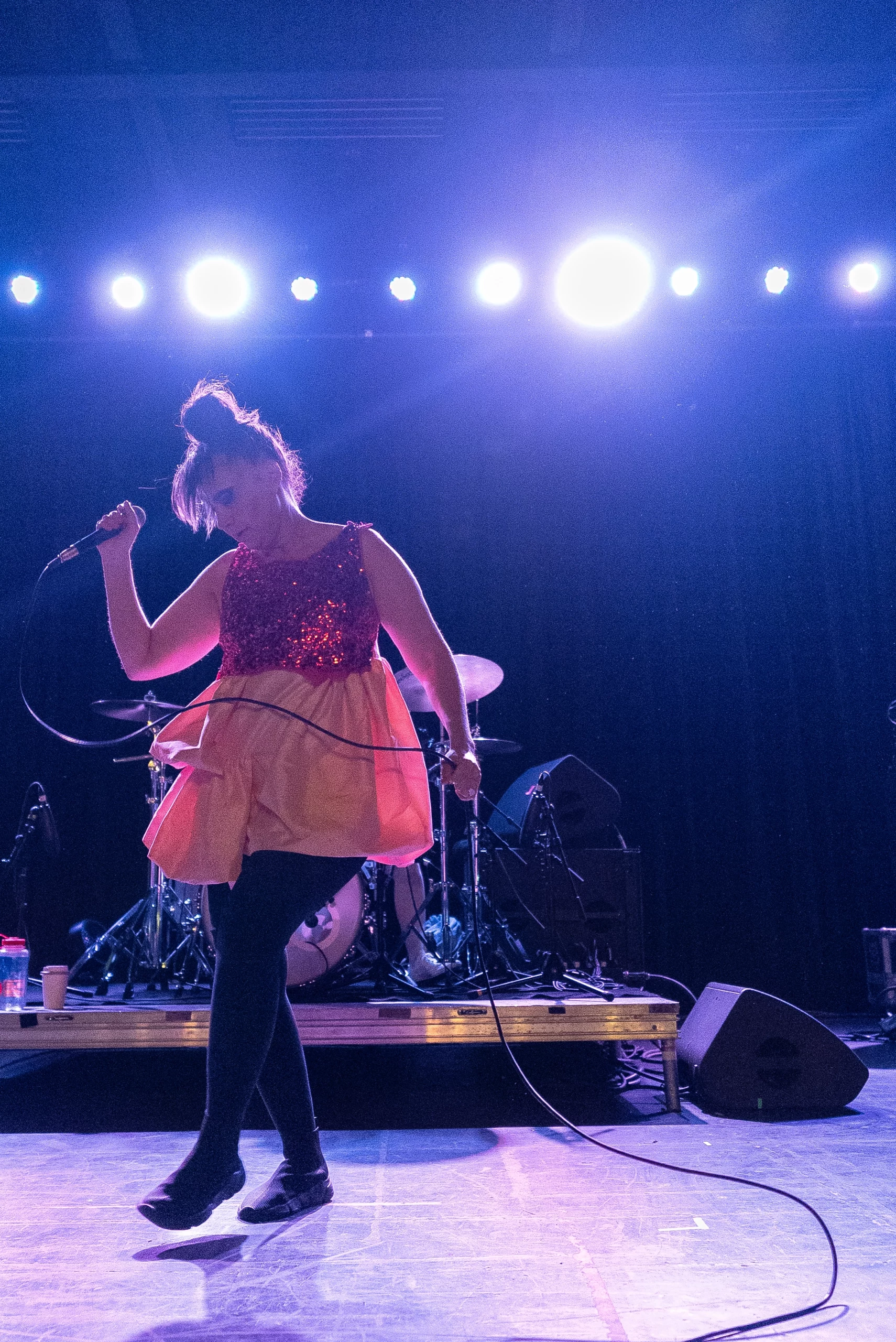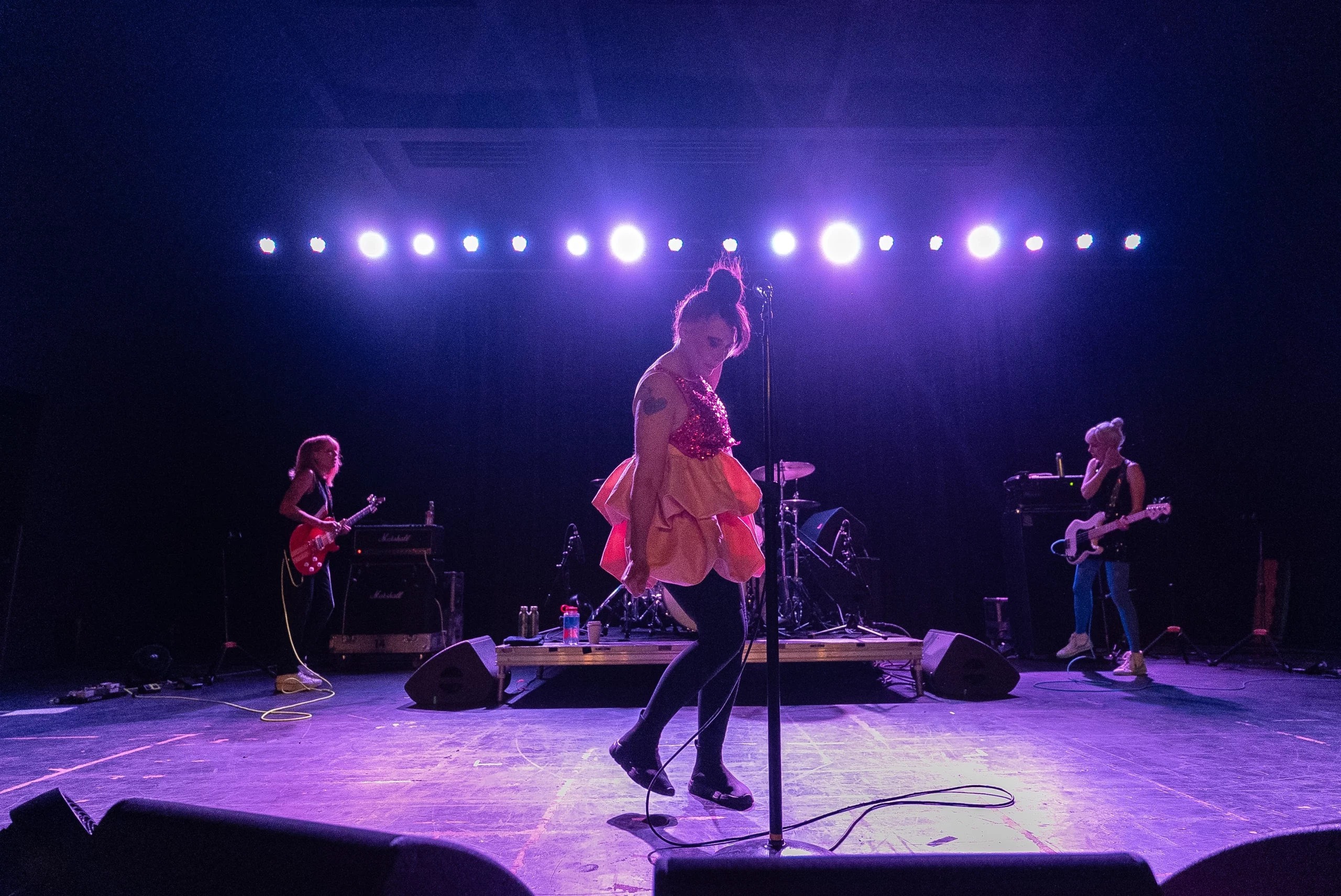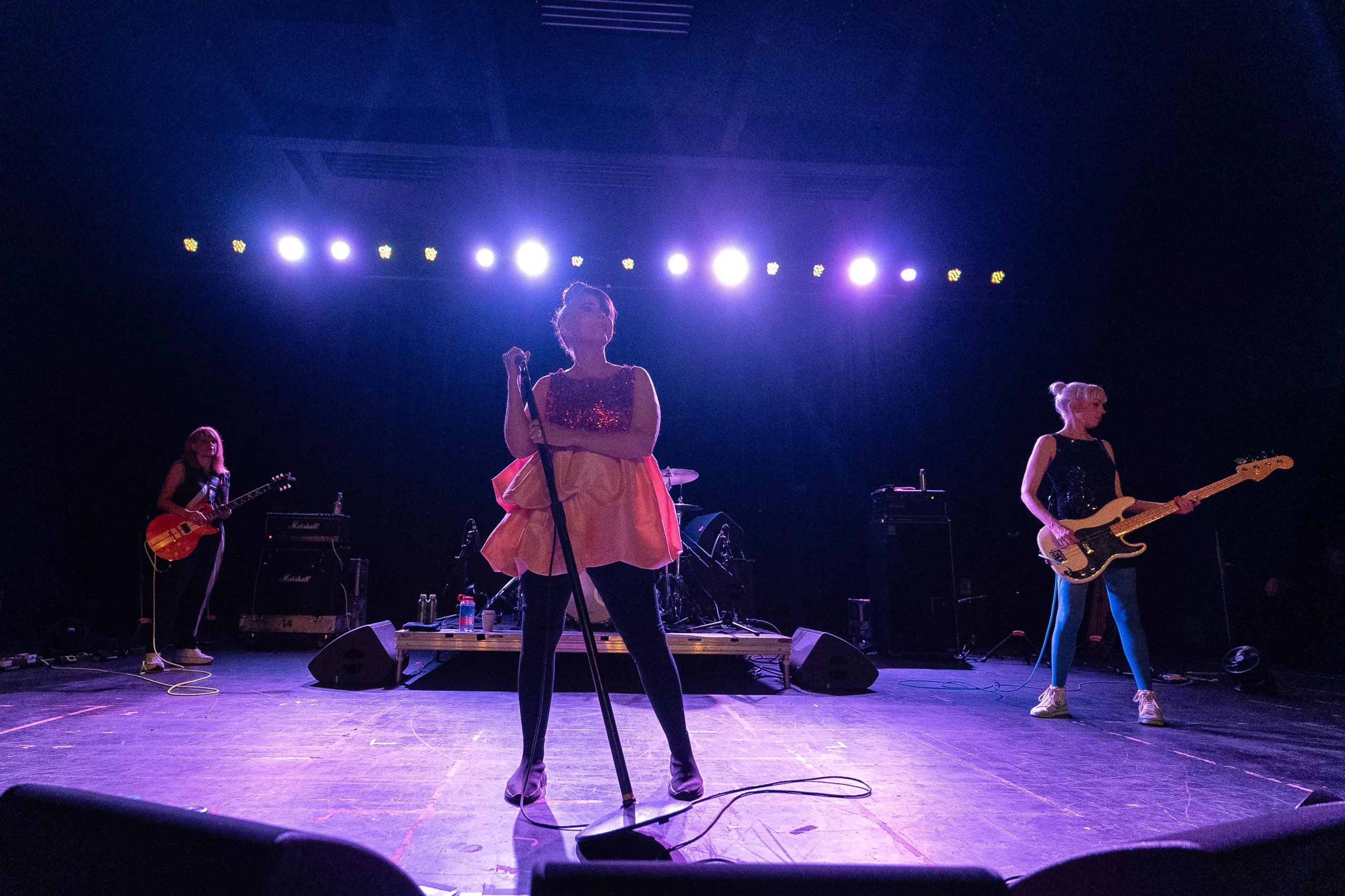 With a burst of sparkle and flounce, riot grrrl legends Bikini Kill stepped onto The Union Event Center stage for their first time in SLC to a roar of thunderous applause. The night was a blistering whirlwind of musical vigor, the air charged with the spirit of punk rock. Heads were banging, vocal cords were straining, and yes—all the girls were at the front. The night was kicked off by Blisster and Cheap Perfume, two grunge/punk rock bands that matched Bikini Kill’s classic riot grrrl sound. It was just the right amount of electric energy to fire the crowd up and keep it burning.