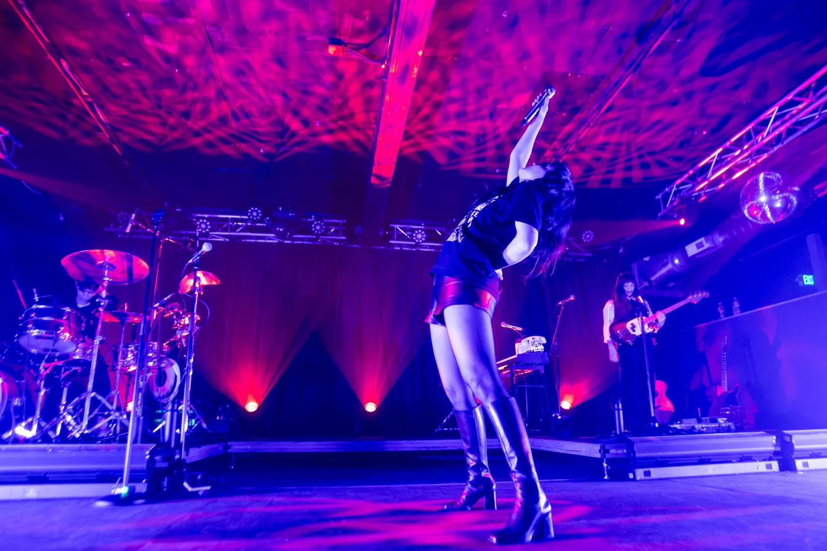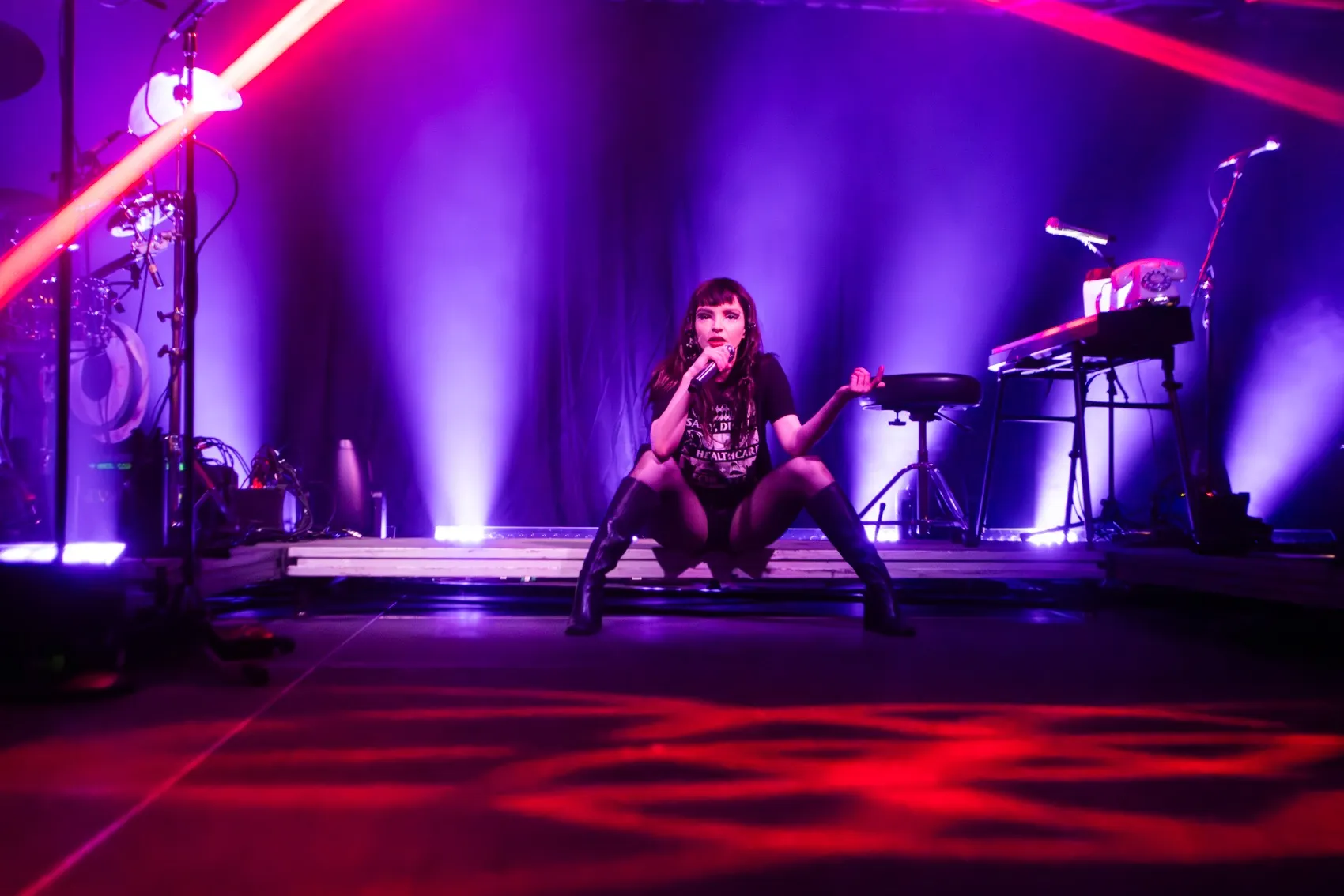 Lauren Mayberry makes good use of the stage space at Soundwell. Photo: Derek Brad.