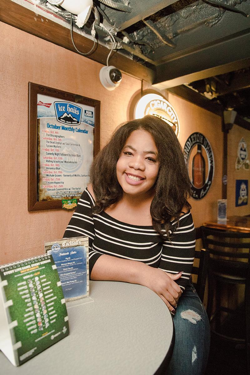 Lewis is the newest comedian in the lot. She started out in improv rather than in stand-up. A former college cheerleader, her energy and confidence still come out in her comedy. Lewis also performs with the improv group Crowdsourced Comedy. Hitting the stage as a solo act seemed like an easier transition for her than for most. “I’ve always liked to be onstage and entertain,” she says. “Growing up, I did stuff like dance, and then I was a cheerleader. In college, I majored in broadcast journalism. I wanted to be a news anchor, but I always enjoyed the funny, comedic stuff.”