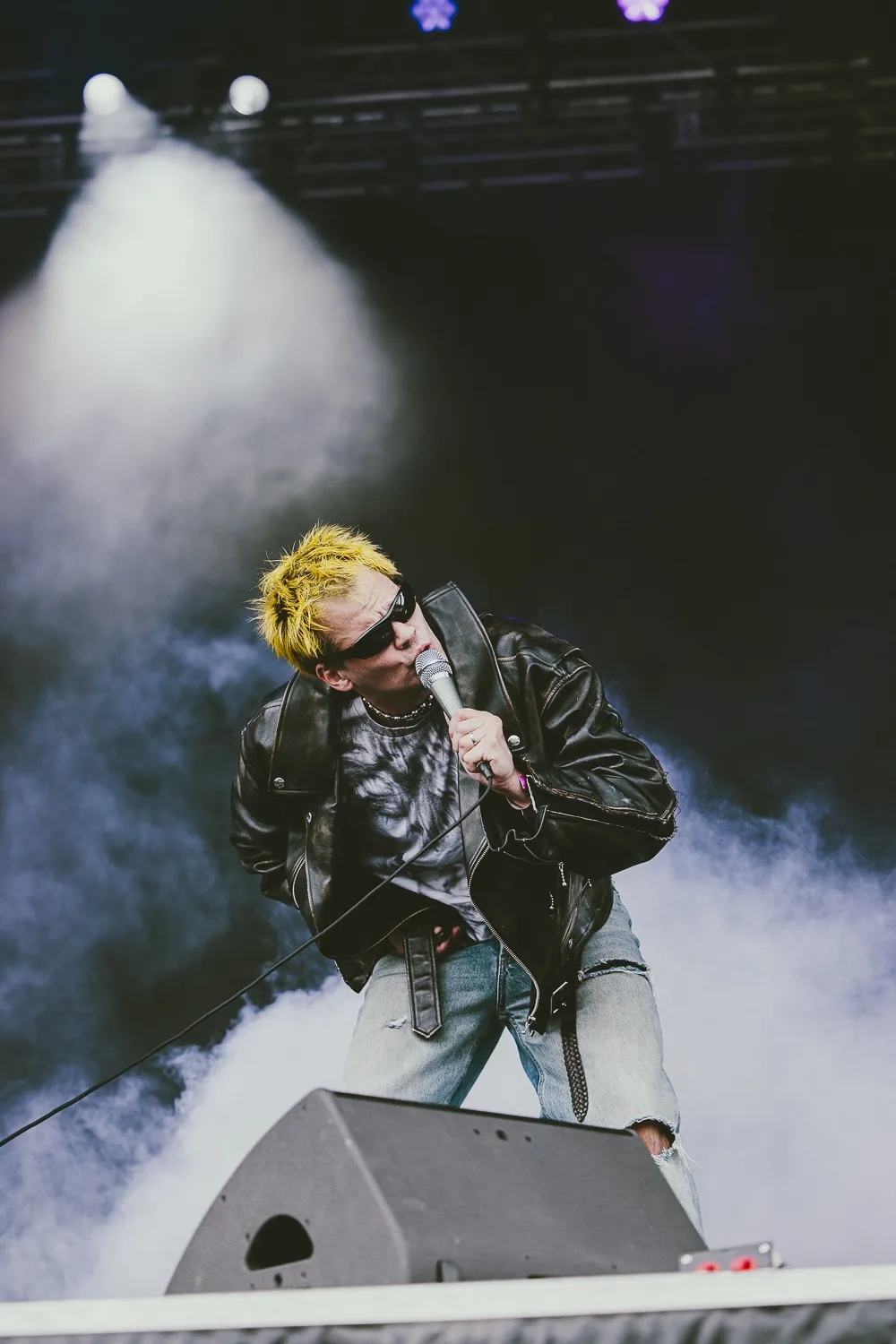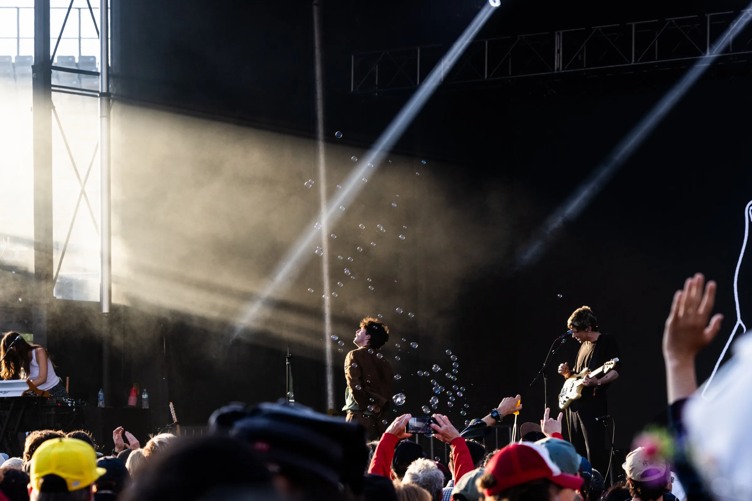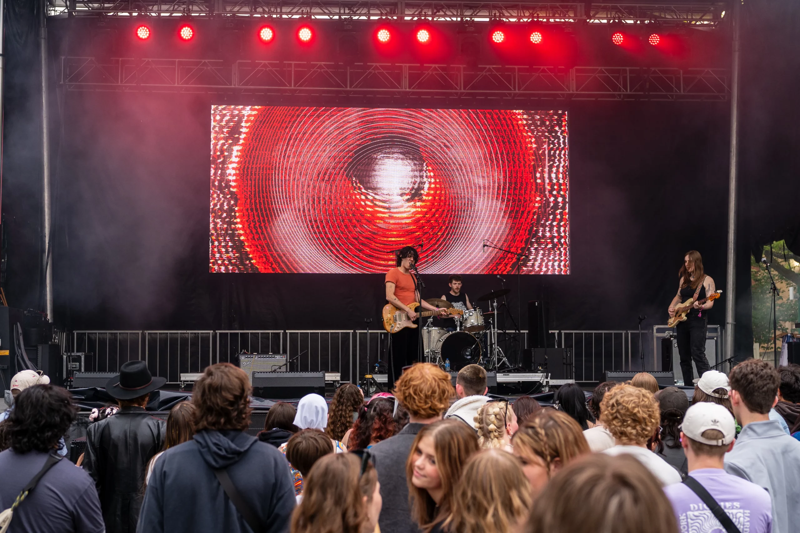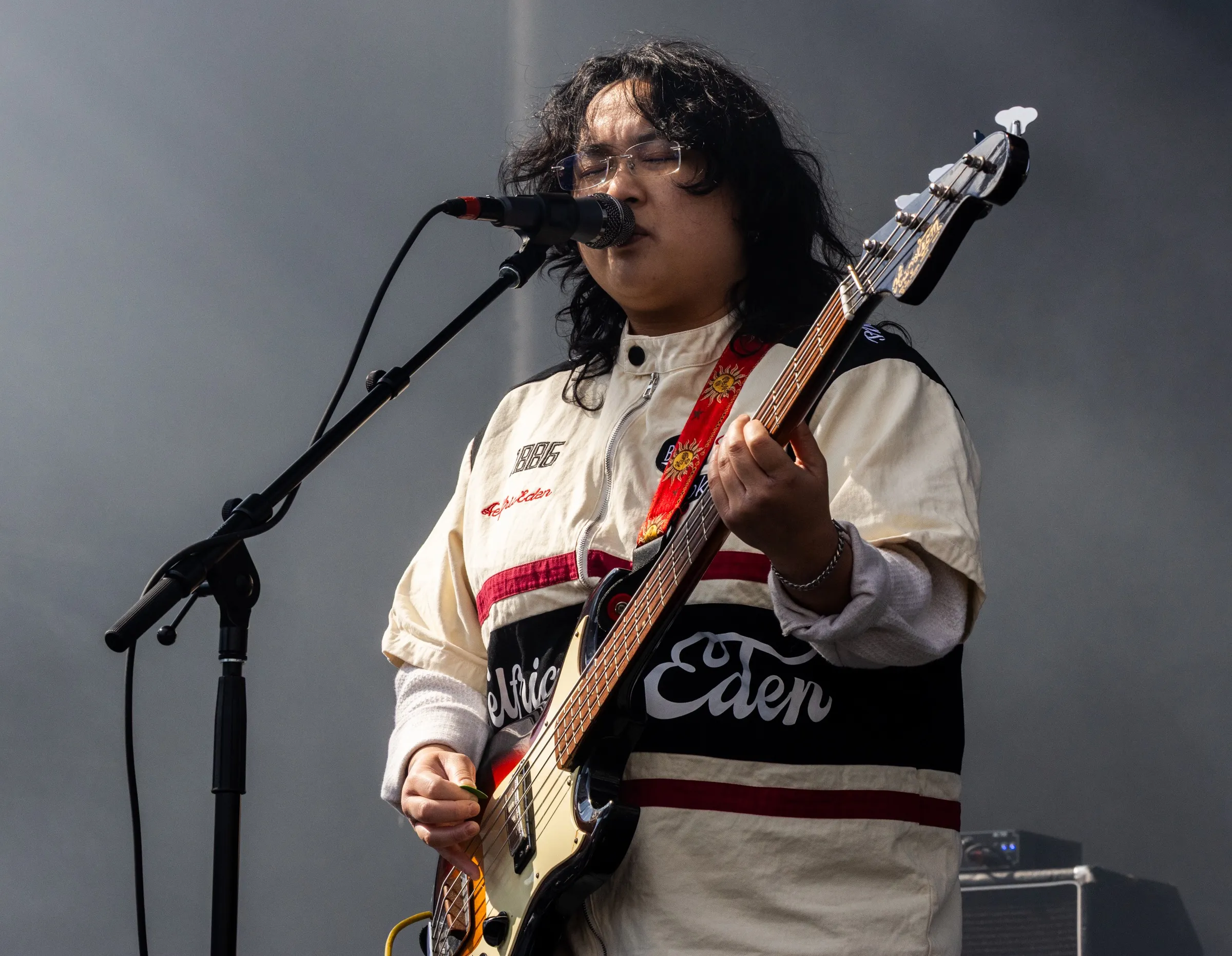 The party raged from Thursday, May 15 to Sunday, May 18 at the Utah State Fairpark. As for the weather, let’s just say it was as varied as the artists on the lineup. Food trucks and stands lined the walkways as far as the eye could see. Those needing a reprieve from the outdoor moshing could enjoy some good old-fashioned clubbing at the Silent Disco. And everyone knows that KBP is a magnet for indie enjoyers who appreciate a good vinyl, so it was the right call for 3hive Record Lounge to bring a literal van filled wall to wall with vinyls ranging from classic pop to anime soundtracks. There was also no need for the constant hassle of taking out your ID anytime you wanted an alcoholic beverage, since they provided 21+ wristbands. Honestly, the thought that went into providing amenities was impressive. The Take 10 Lounge provided shade, free Nutri-Grain Bars, dry seating and phone charging stations. All this praise, and we haven’t even gotten into the music.