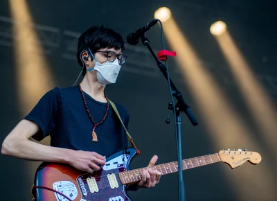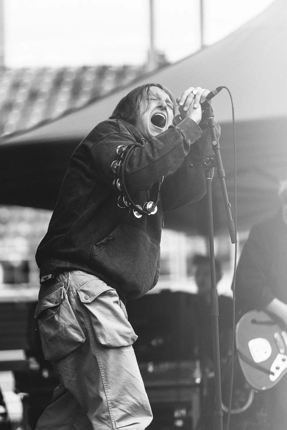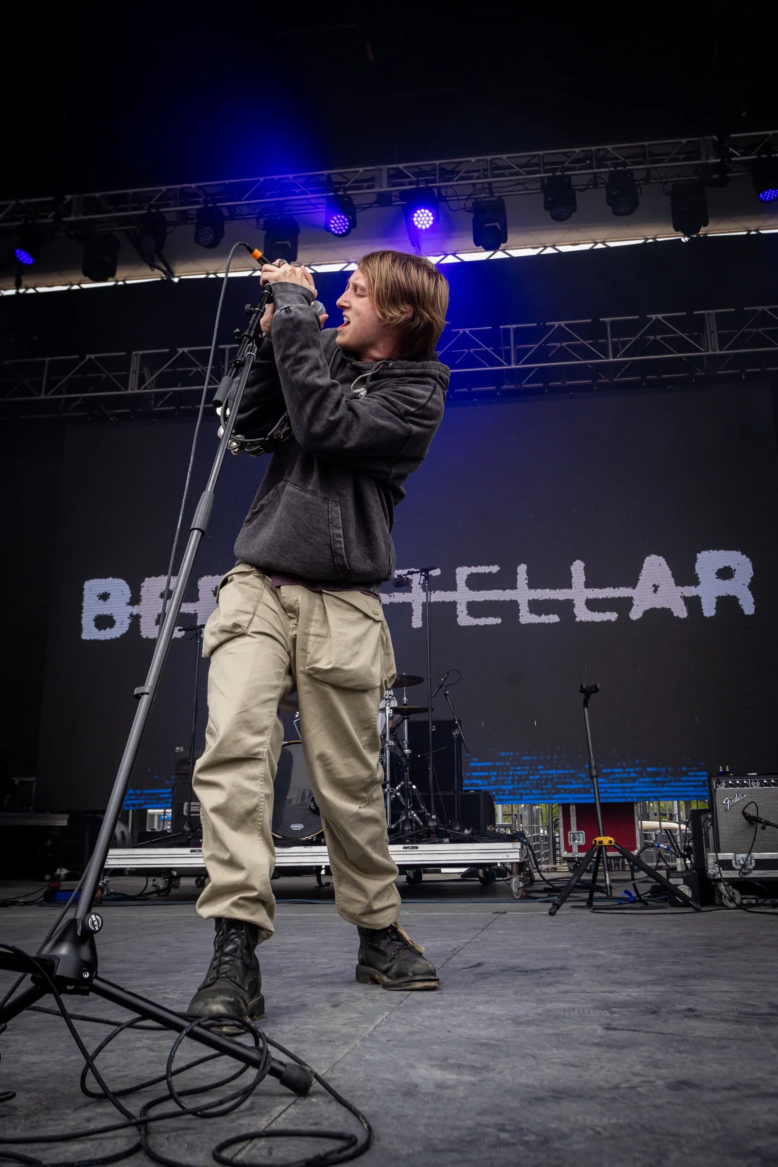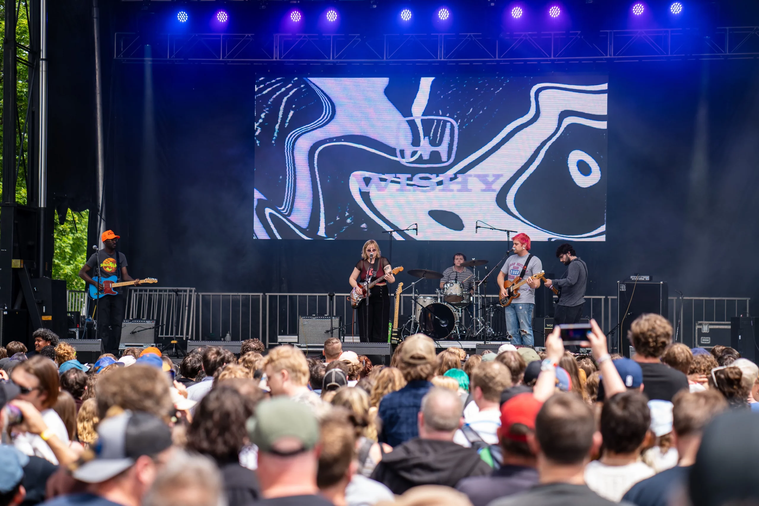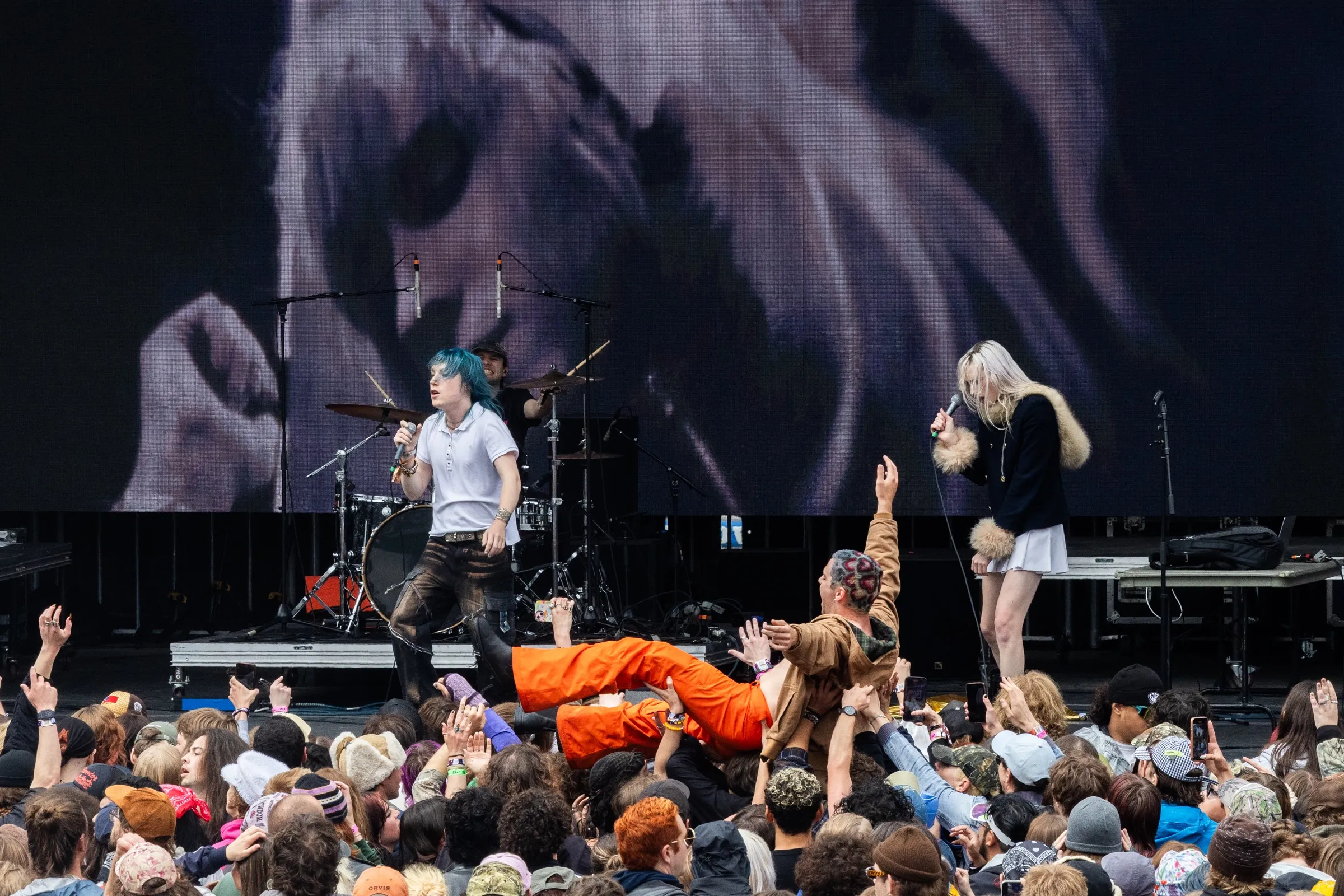 The party raged from Thursday, May 15 to Sunday, May 18 at the Utah State Fairpark. As for the weather, let’s just say it was as varied as the artists on the lineup. Food trucks and stands lined the walkways as far as the eye could see. Those needing a reprieve from the outdoor moshing could enjoy some good old-fashioned clubbing at the Silent Disco. And everyone knows that KBP is a magnet for indie enjoyers who appreciate a good vinyl, so it was the right call for 3hive Record Lounge to bring a literal van filled wall to wall with vinyls ranging from classic pop to anime soundtracks. There was also no need for the constant hassle of taking out your ID anytime you wanted an alcoholic beverage, since they provided 21+ wristbands. Honestly, the thought that went into providing amenities was impressive. The Take 10 Lounge provided shade, free Nutri-Grain Bars, dry seating and phone charging stations. All this praise, and we haven’t even gotten into the music.