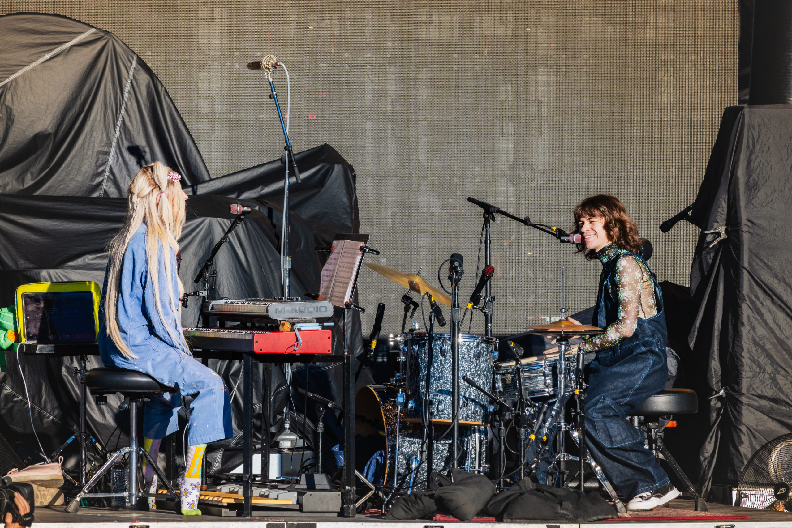 Domi and JD Beck comment on the blaring sun during their set at the Utah First Credit Union Amphitheatre. Photo: @lmsorenson
