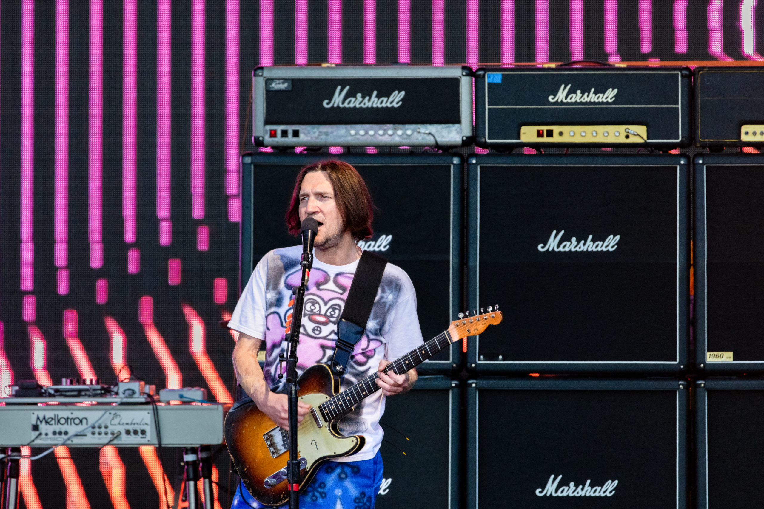 John Frusciante plays guitar on stage at the Utah First Credit Union Amphitheatre with the Red Hot Chili Peppers. Photo: @lmsorenson