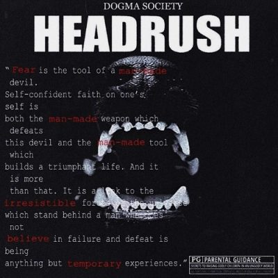 You can always be louder, angrier. In pursuit of this accumulating aggression, “HEADRUSH,” the debut single from the DOGMA SOCIETY collective, uses a no-frills posse cut structure to enter into the ever-running competition of finding the nastiest people alive. From the cold, laid-back precision of Dirty Chino’s hook and first verse to K8oh’s pun-heavy triplet takedowns, the shouted franticness shared by Nube$ and Lord Sinek to the bed of blown-out bass supporting everyone, each element of “HEADRUSH” fills in a different section of the paint-by-numbers until the whole thing drips with blindning reds and blacks. Save the protracted instrumental ride-out, not a second of the track passes without an onslaught DOGMA SOCIETY’s self-righteous indignance or their tomes of ultraviolence and hedonism. –Audrey Lockie
