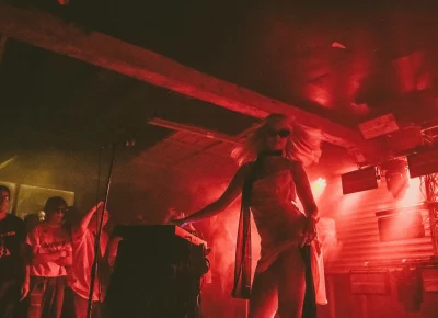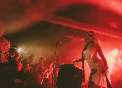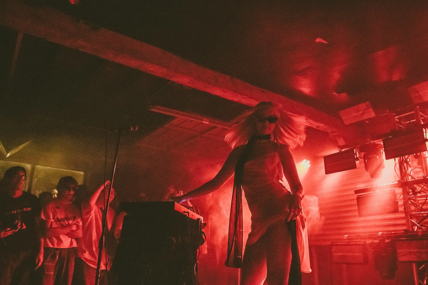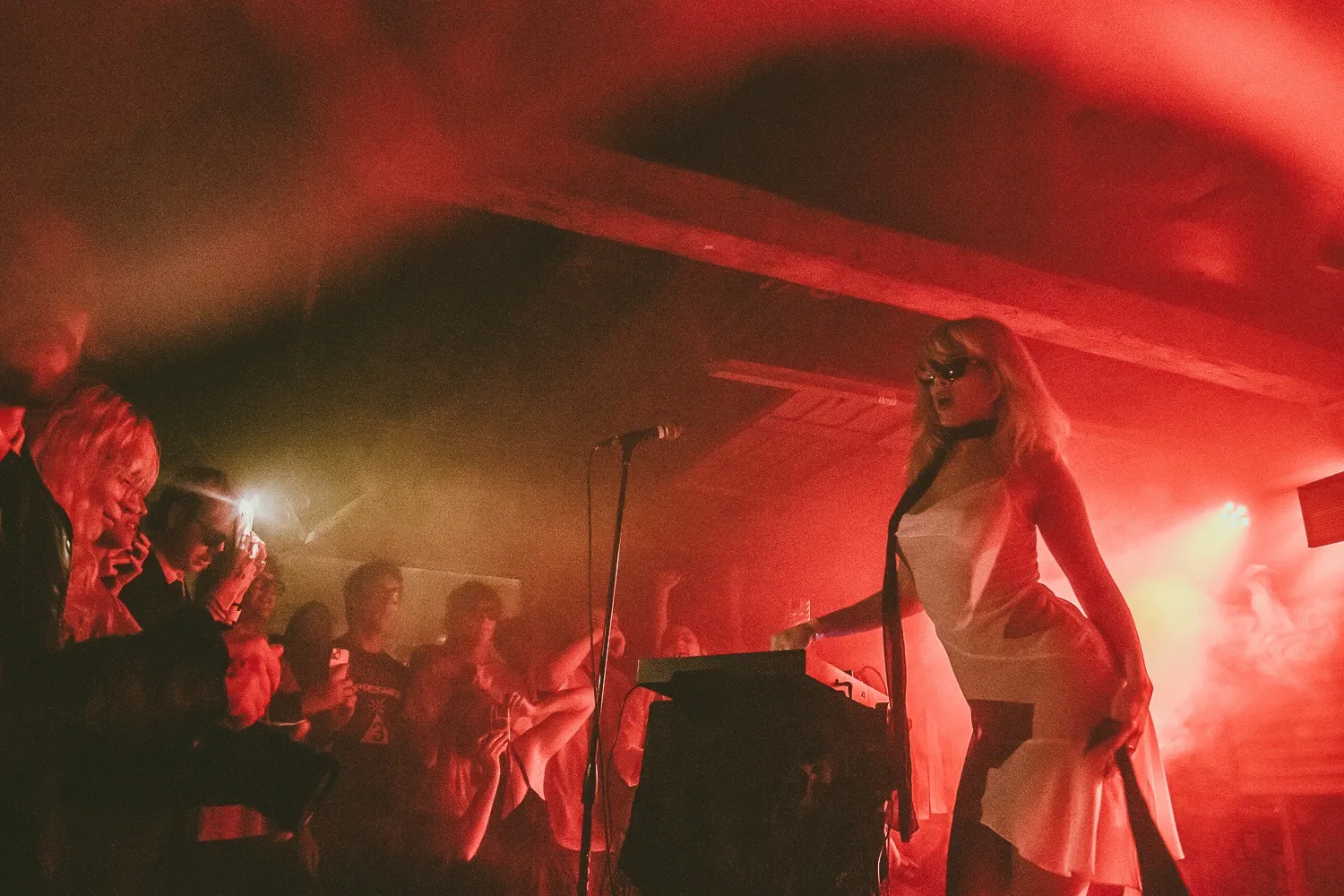 The intimate venue was packed with thrashing and writhing bodies, their anticipation so palpable that it suffocated the steamy room. Bold strobe warnings were taped along the walls, highlighting the unspoken dress code of the night: a sea of oversized black sunglasses reflecting back at the stage, each pair ready to sweat it out and sex it up. Once the clock struck eight, opener Avalon strutted through the Kilby doors, her slinky slip dress and pointy black heels oozing confidence and sensuality. With electronic pop beats pulsating through the air, she set the tone for a night that promised to be absolutely salacious.