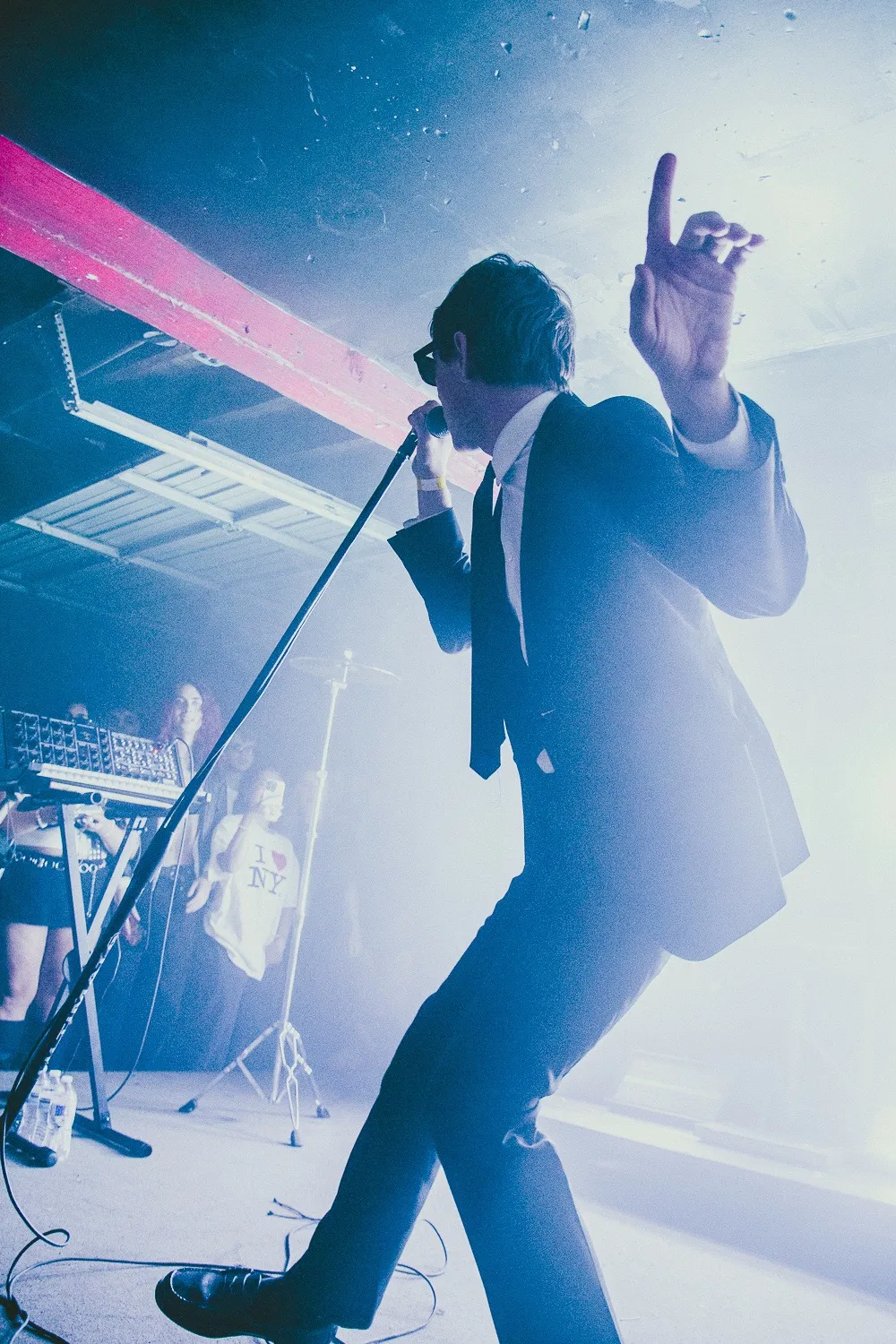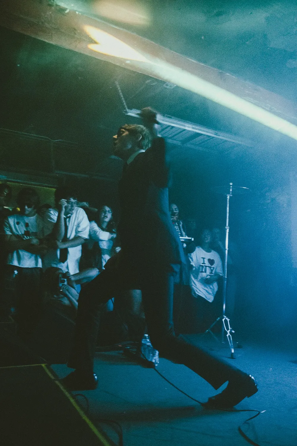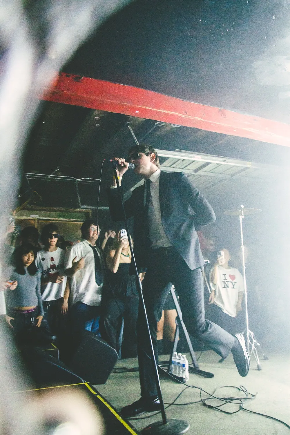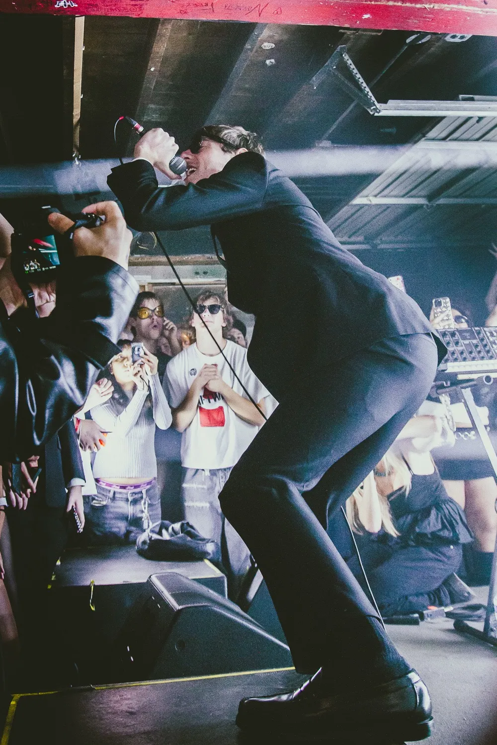 By the time our headliner slinked onto the miniscule stage, everyone was aching to know what exactly was wrong with New York. “It’s just rock and roll, you won’t die / You can’t spend your whole life inside,” The Dare declared into the microphone, kicking off his first song of the night, very perfectly titled “Open Up”. As blinding lights strobed behind him, he contorted his body into flailing dance moves, the screams of his adoring fans bleeding into the clash of the hi-hat he smashed above their heads. Soon, the signature blazer would come off and the sunglasses would fly off his face to reveal eyes squeezed shut in concentration. It was unhinged, uncoordinated and still somehow very sexy? But maybe that was just the $5.99 perfume clouding everyone’s head.