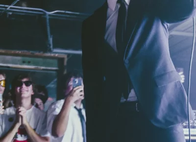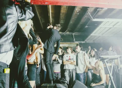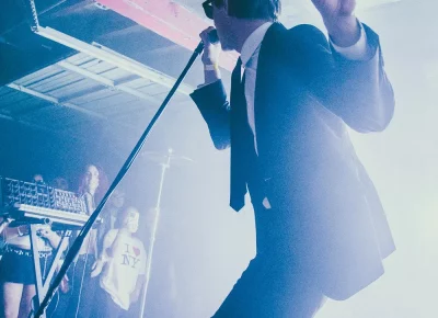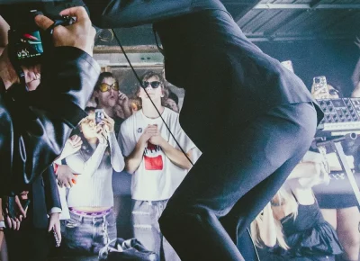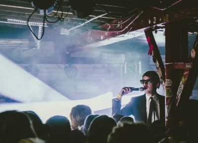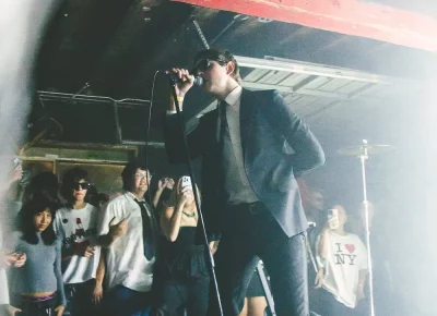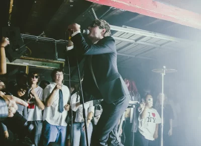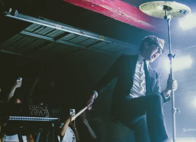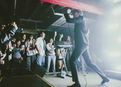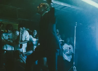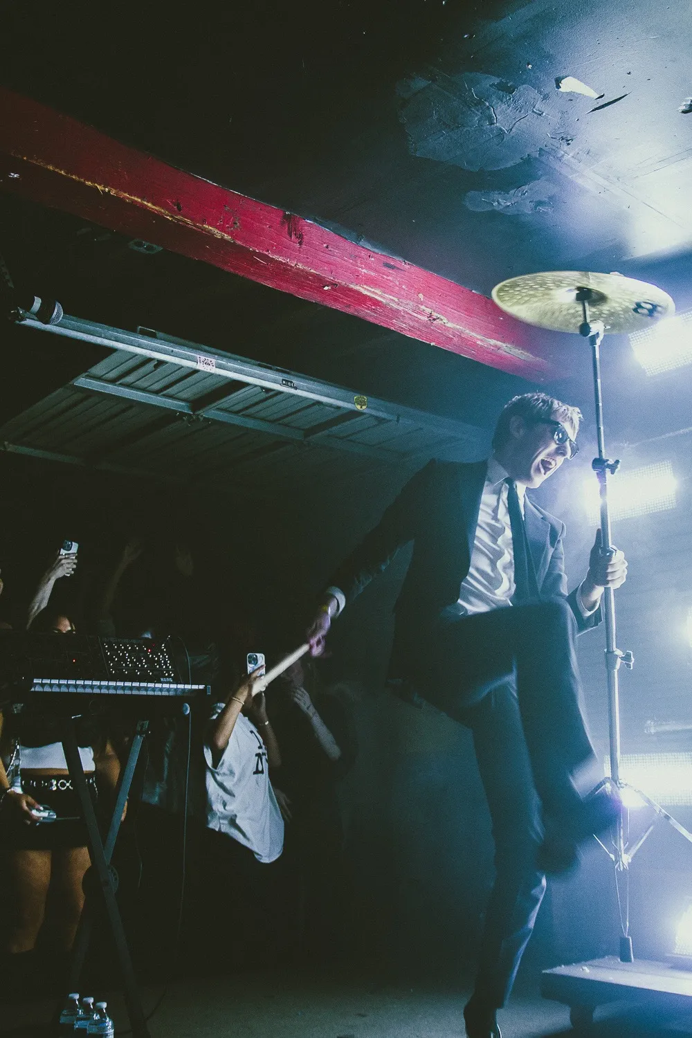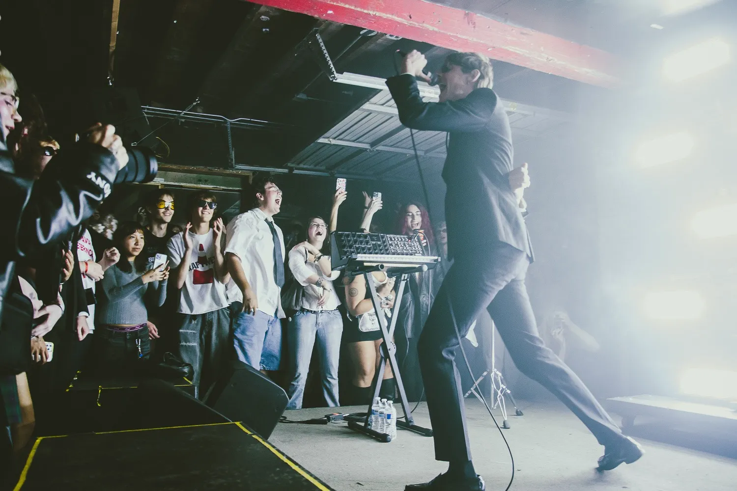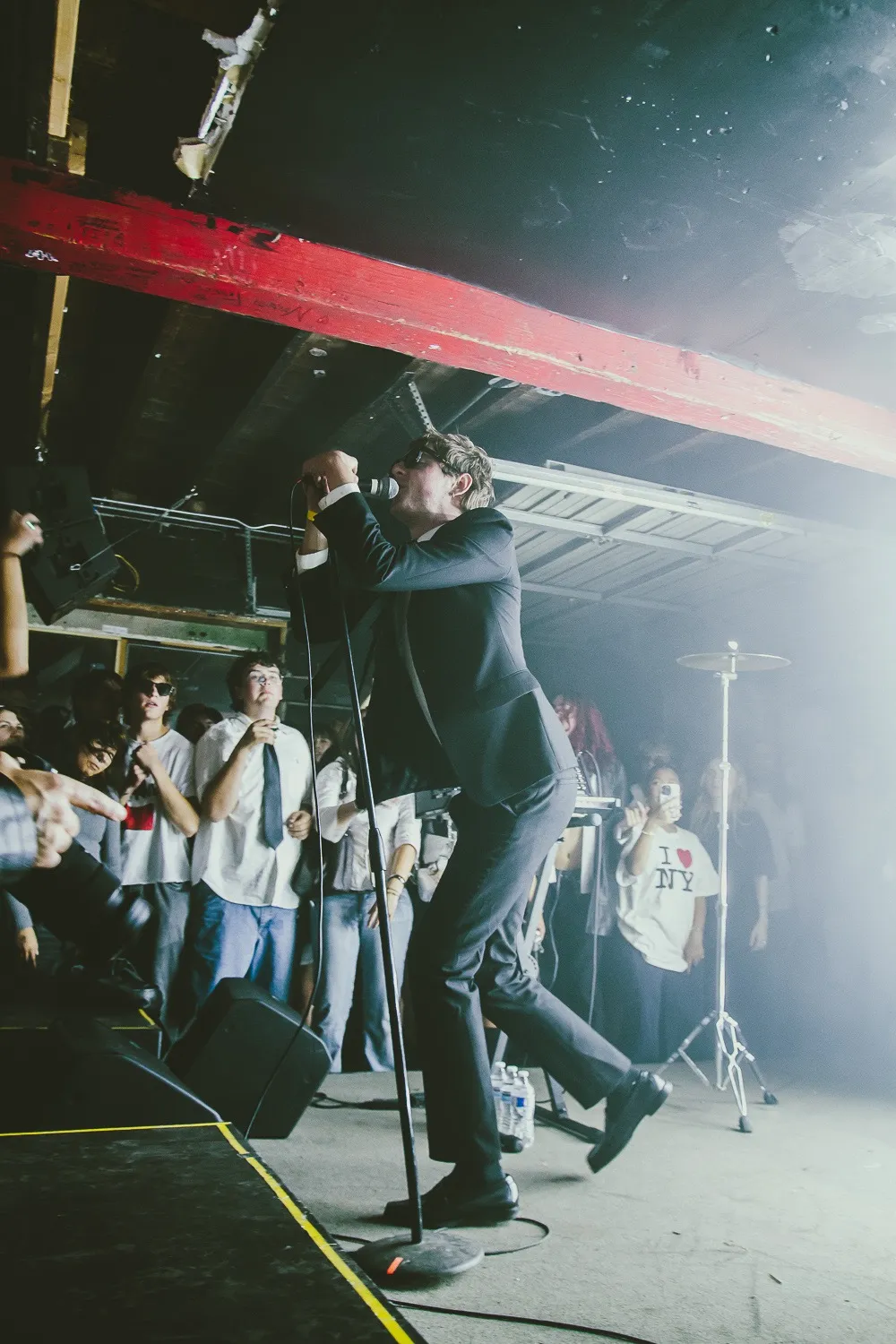 By the time our headliner slinked onto the miniscule stage, everyone was aching to know what exactly was wrong with New York. “It’s just rock and roll, you won’t die / You can’t spend your whole life inside,” The Dare declared into the microphone, kicking off his first song of the night, very perfectly titled “Open Up”. As blinding lights strobed behind him, he contorted his body into flailing dance moves, the screams of his adoring fans bleeding into the clash of the hi-hat he smashed above their heads. Soon, the signature blazer would come off and the sunglasses would fly off his face to reveal eyes squeezed shut in concentration. It was unhinged, uncoordinated and still somehow very sexy? But maybe that was just the $5.99 perfume clouding everyone’s head.