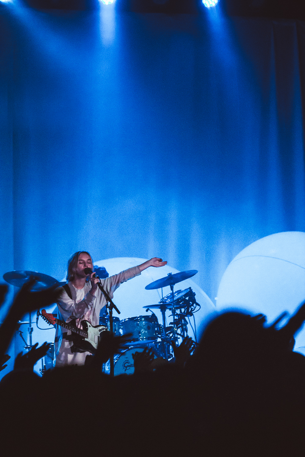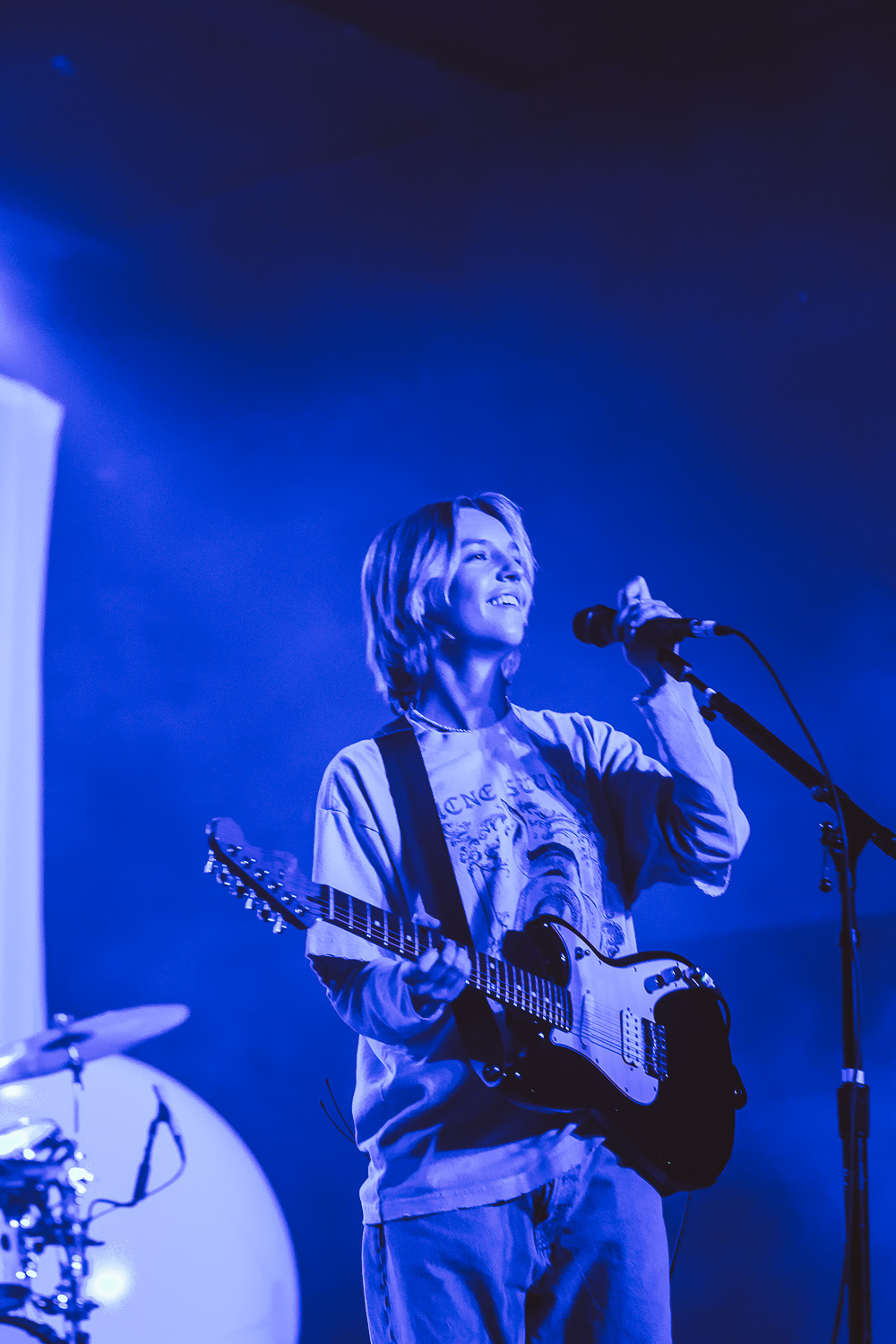 On Wednesday, April 7, I had the blessing of witnessing The Japanese House’s incredible set at The Union Event Center. I arrive at the venue, and immediately upon entering the crowd, an element of homeliness is present. Creative outfits and makeup shine, even under the blue wash light. Gleeful cheers fade into a whispering hush as the lights dim for opening act Skullcrusher. Despite Skullcrusher’s hardcore name, she almost brings me to tears. An imaginary barrier seems to fall between a fantastical world and reality in her folksy dreamland.