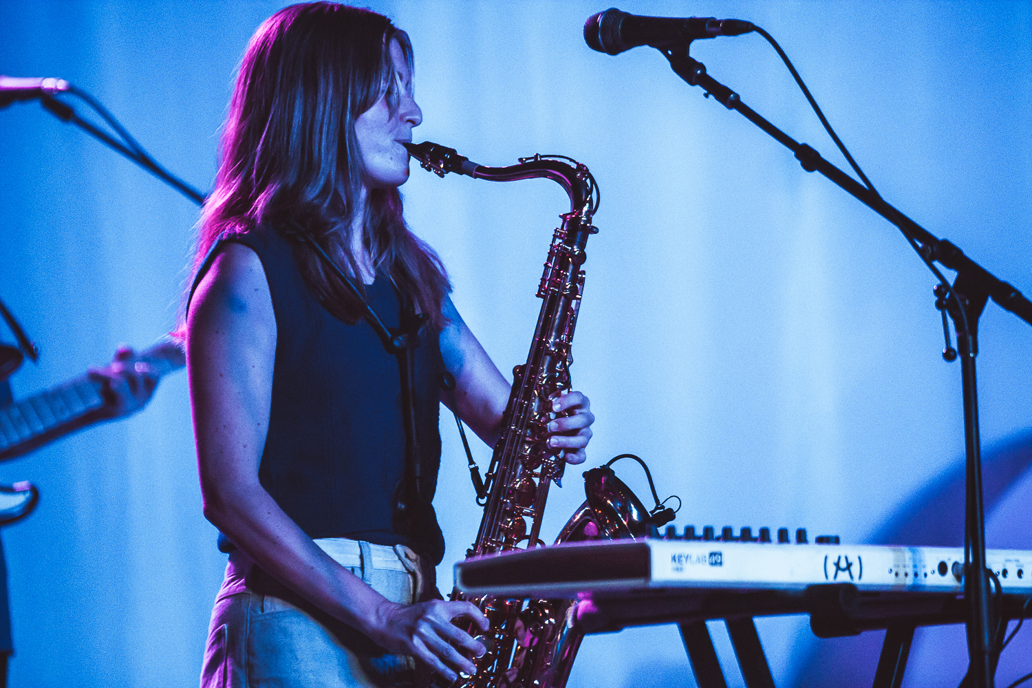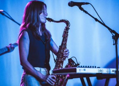 Another thing about Bain—she really lets her talented band shine, exclaiming, “This is the best part of the song!” as Cotton bodies a saxophone bit on “Friends.” In any solo by bandmates, she’s there carrying them along, making sure the spotlight is on them. The real love she has for her bandmates is obvious in the way she interacts with them. She grins sheepishly and dances with them during “Follow my girl,” prancing and weaving between them in a manner that tells her crowd that she’s here to have a good time.