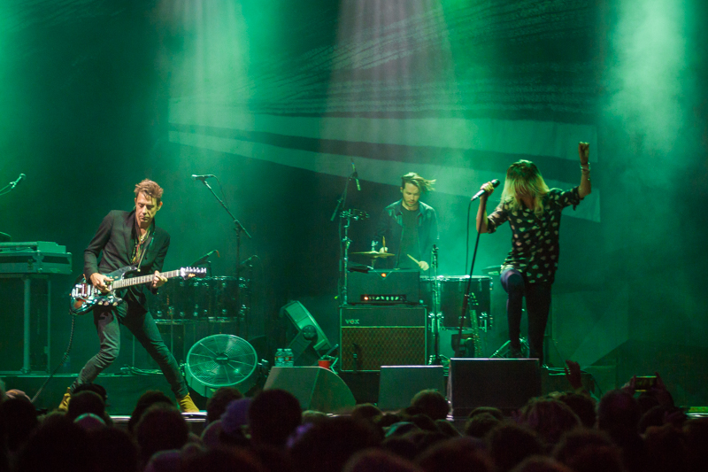 (L–R) Jamie “Hotel” Hince, The Kills’ touring percussionist and Alison “VV” Mosshart really left their heart and soul on stage Thursday night. Photo: Talyn Sherer