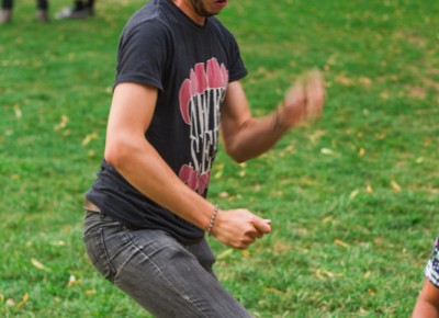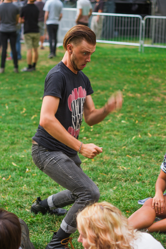 One fan awkwardly dances for another making it an all around entertaining event to watch from afar. Photo: Talyn Sherer