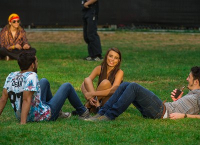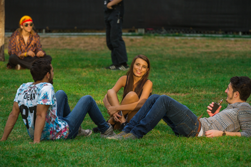 A group of friend’s chillax on the grass while waiting for The Kills to take the stage. Photo: Talyn Sherer