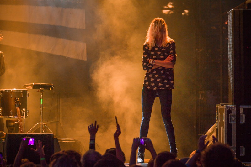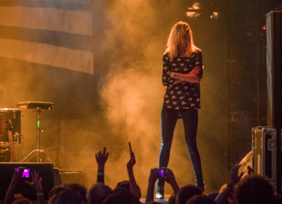 Lead singer Alison “VV” Mosshart takes to the right side of the stage to pose like the cool cat she is while performing with her band The Kills. Photo: Talyn Sherer