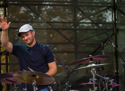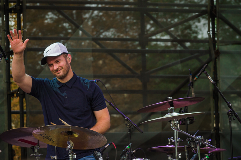 Drummer Aaron Anderson of Fictionist waves goodbye to his fans as they leave the stage on Thursday night. Photo: Talyn Sherer